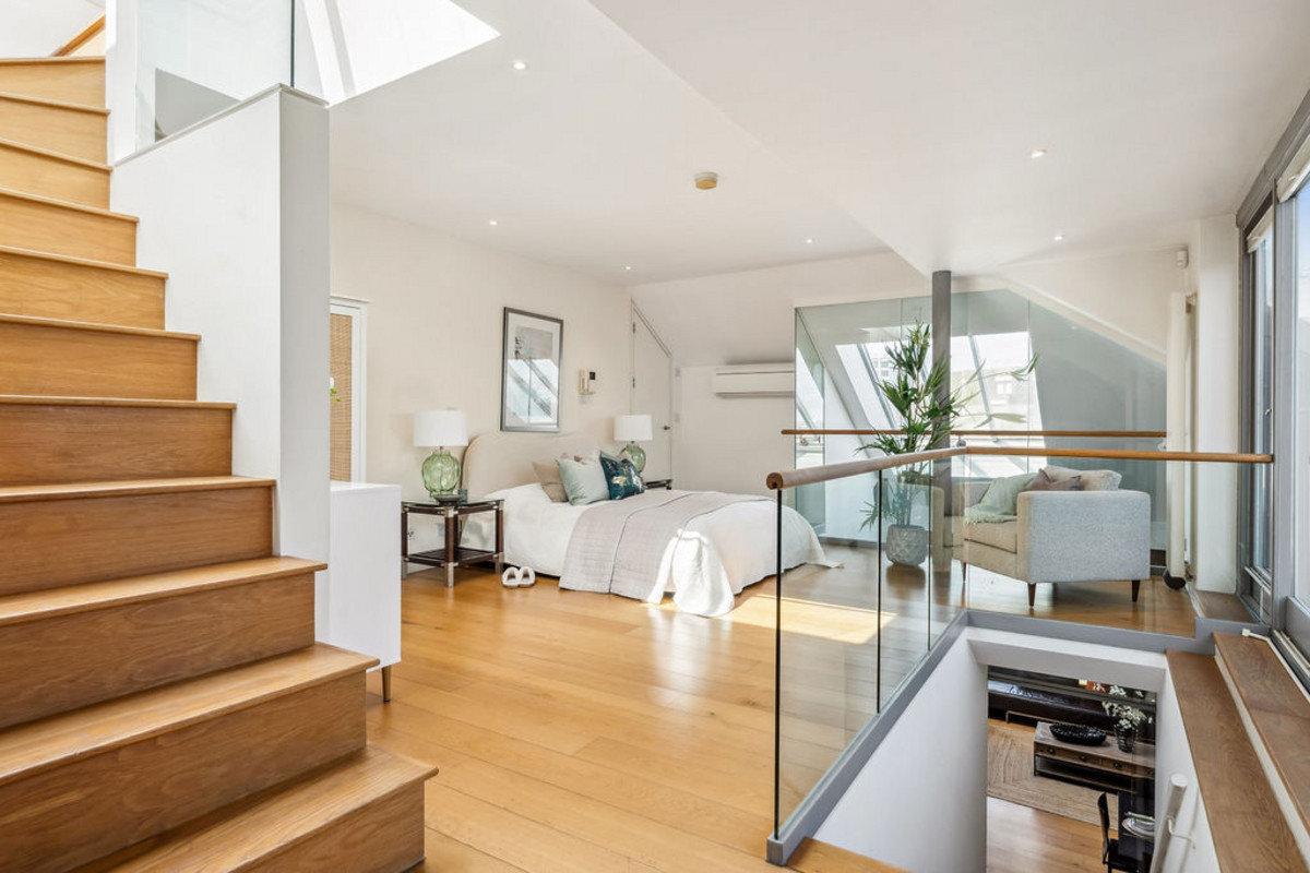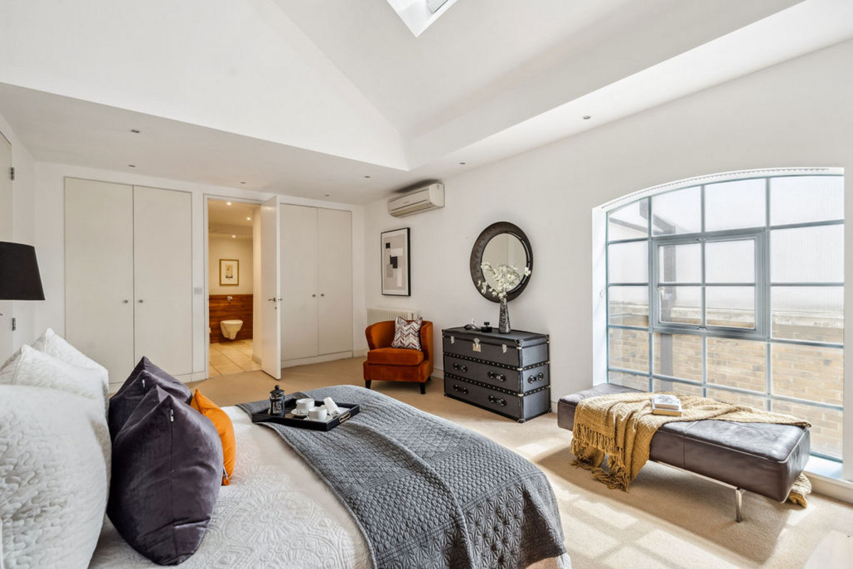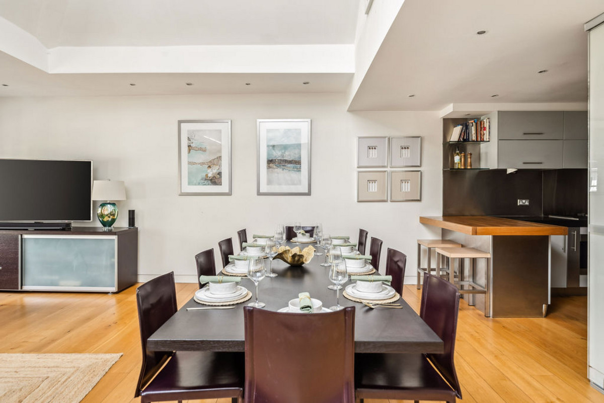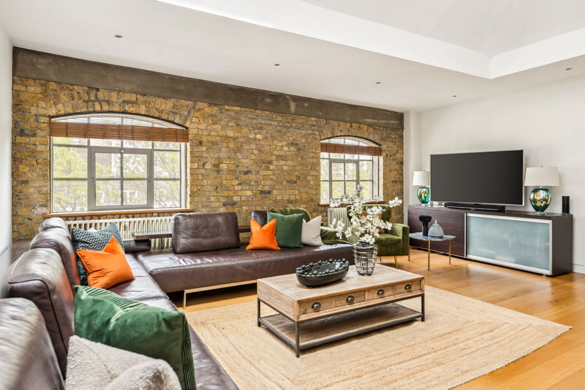 - Landmark duplex penthouse in a converted warehouse on Battersea Square.