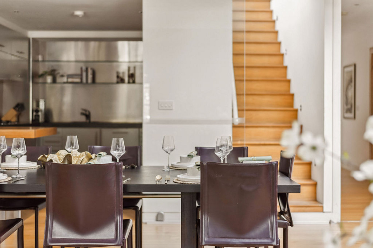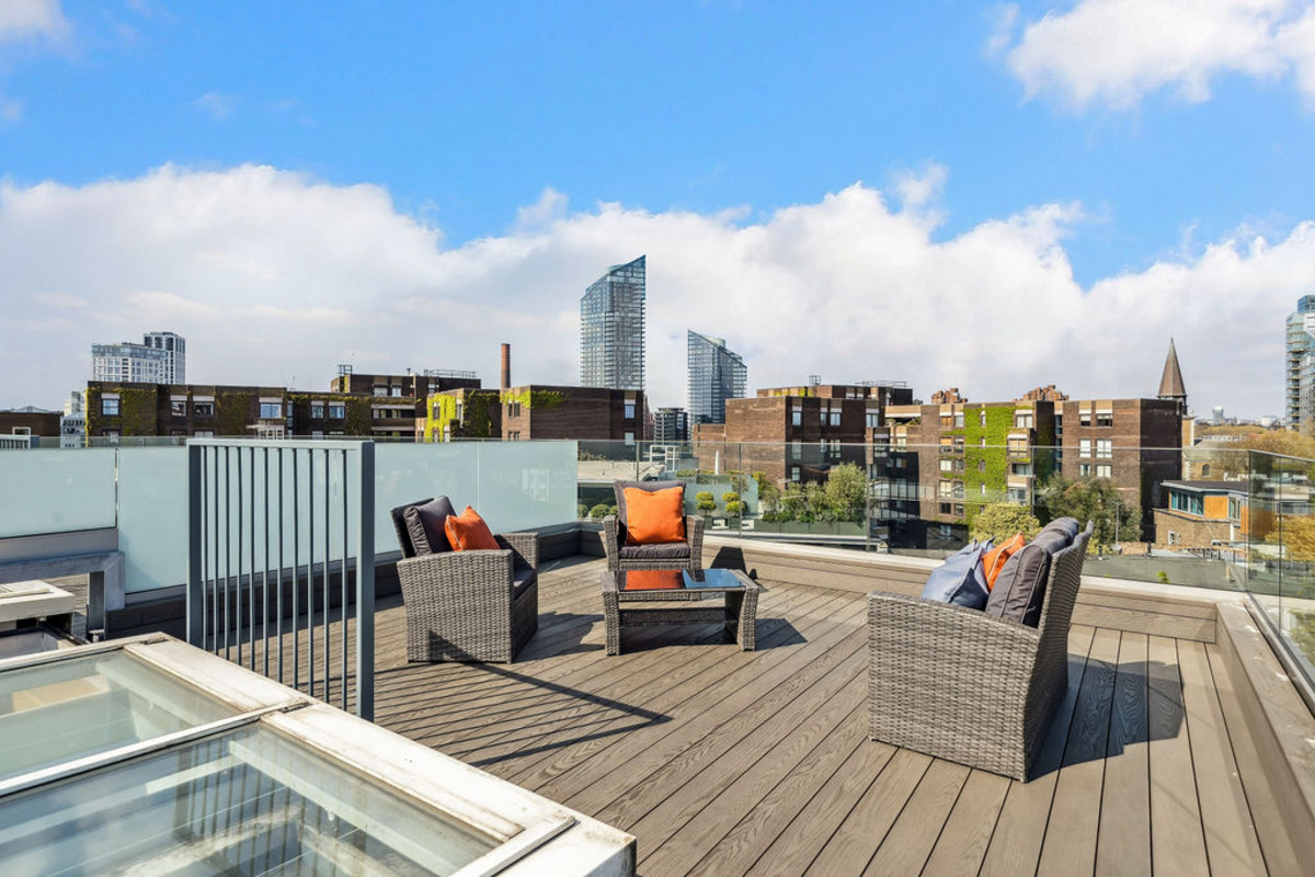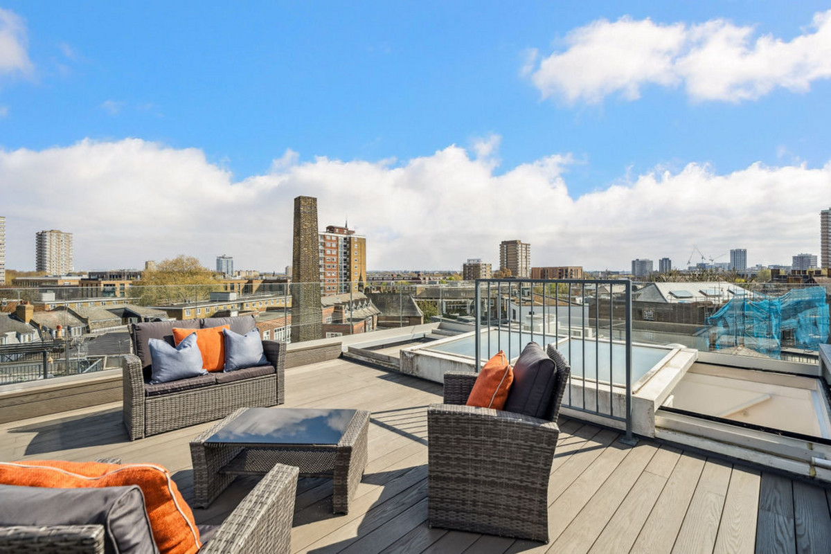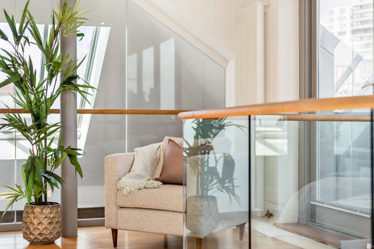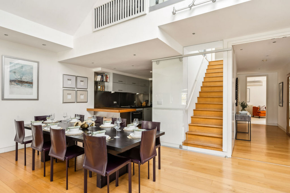 - Landmark duplex penthouse in a converted warehouse on Battersea Square.