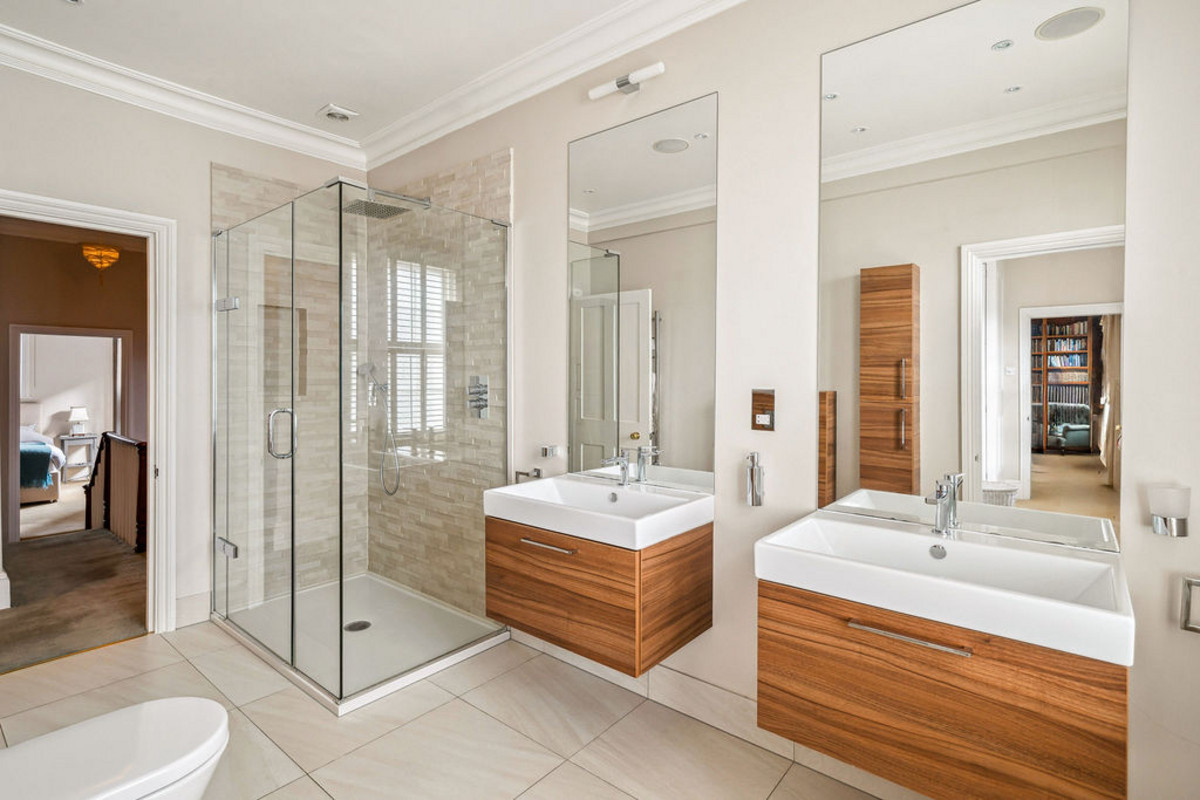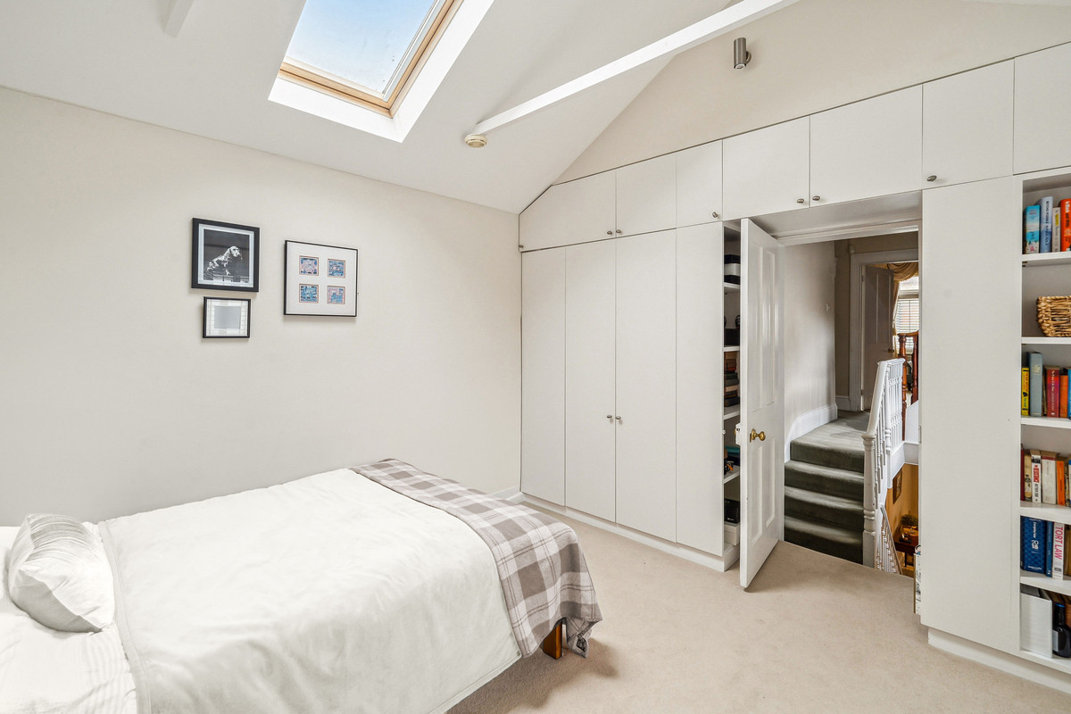 Venture upstairs to discover the luxurious principal suite, featuring a fully fitted dressing room and a sumptuous en suite shower room—a soothing sanctuary at day’s end. A generous guest suite overlooks the enchanting garden and also enjoys its own en suite. Three further double bedrooms, two with contemporary fitted wardrobes, and an additional family bathroom and shower room provide ample space for a growing or multi-generational family. On the top floor, two more double bedrooms, each with access to its own bathroom facilities, make guests feel instantly at home. If you need even more storage, you’ll find extensive cupboards in the eaves and large cellar space below.