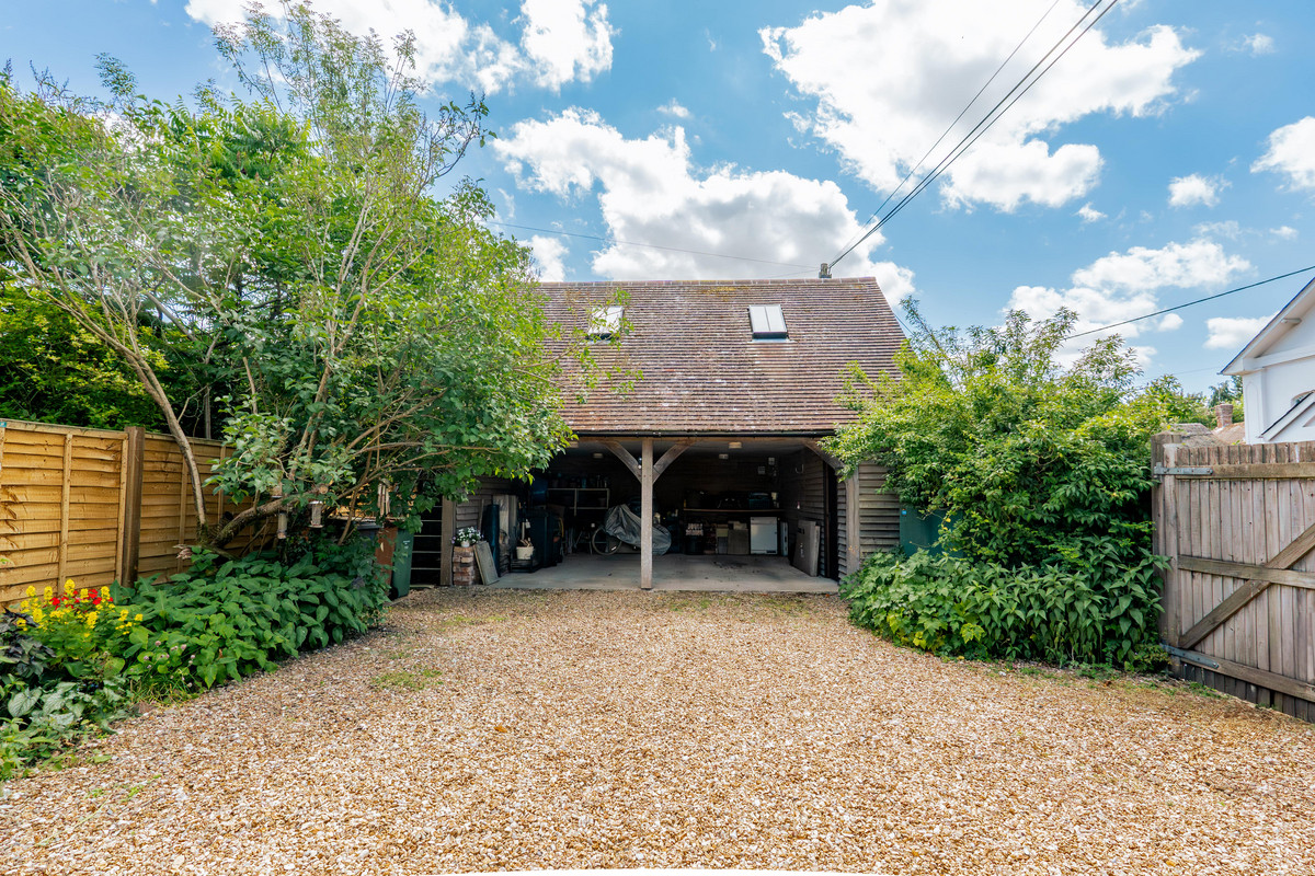 Tucked away in the charming village of Hurstbourne Tarrant, this beautifully presented brick and flint home combines timeless character with the ease of contemporary living. Surrounded by the scenic North Wessex Downs, the property sits in mature, landscaped gardens that provide both privacy and tranquillity. At the front, a gated gravel driveway offers generous parking and leads to a bespoke barn-style outbuilding. This impressive structure includes a double carport, integrated storage and a fully insulated upper-level studio, perfect for use as a home office or, subject to planning, additional accommodation.