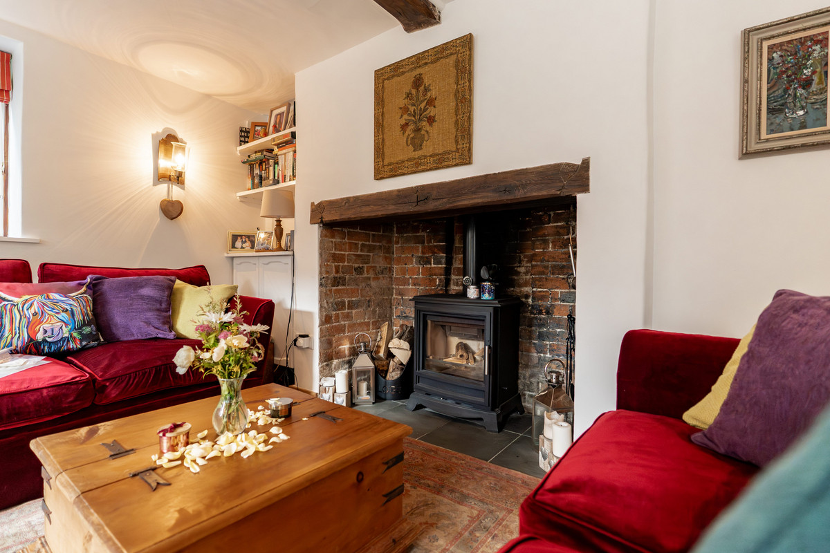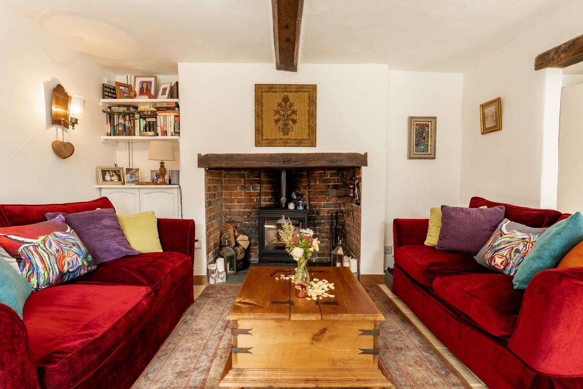 - Dual-aspect living room with original inglenook fireplace and wood-burning stove