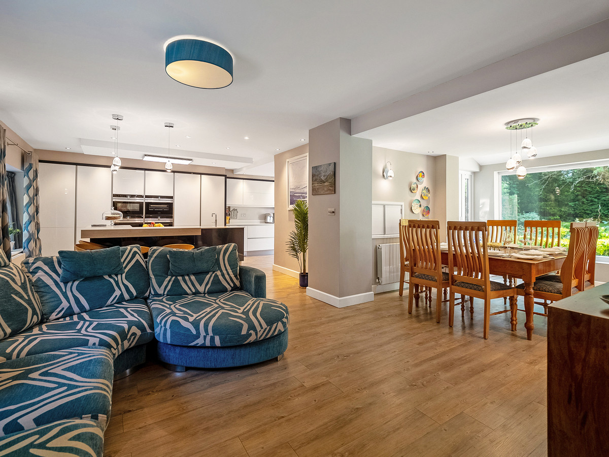 - Impressive open-plan kitchen/dining/family room with stunning garden views