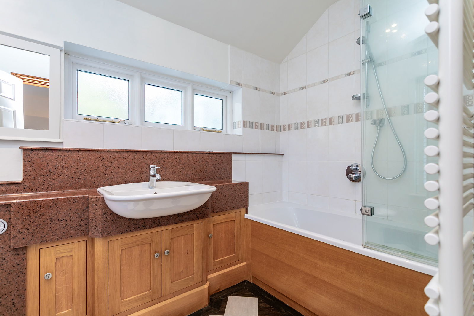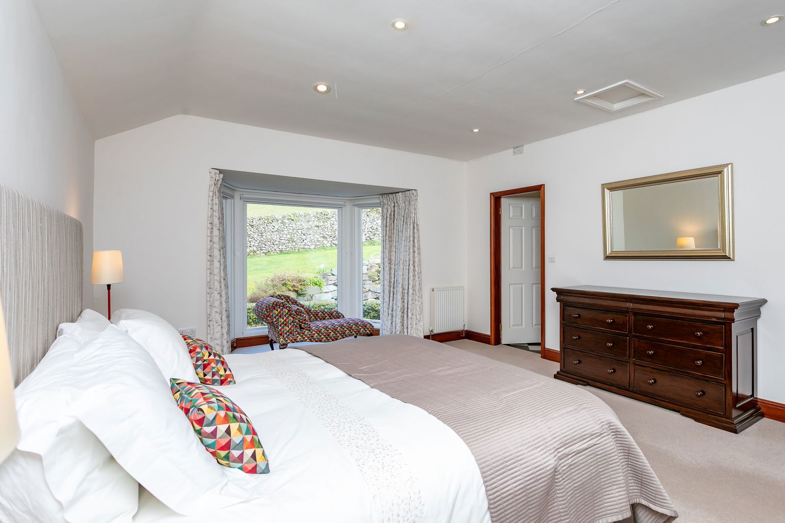 There are two generous double bedrooms. The first has a delightful bay window with a view of both Stone Arthur and through the trees to the local landmark, “The Lion and the Lamb”, otherwise known as Helm Crag. A small lobby at the room’s entrance has a fitted wardrobe. The ensuite bathroom is well fitted with a Villeroy & Boch suite of bath, having a shower over, an oak fronted vanity unit with a Corian top, a WC, heated towel rail and Amtico flooring.