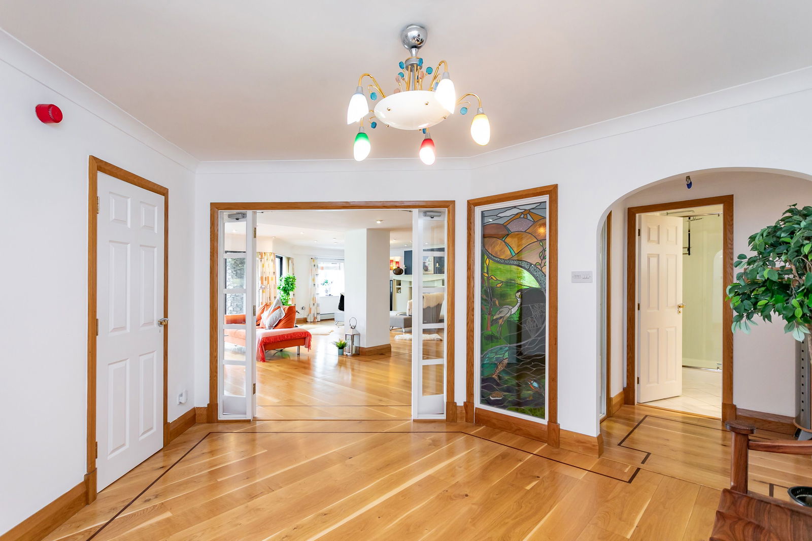 The reception hall was enlarged to create an imposing entrance with plenty of room for meeting, greeting and welcoming guests with the convenience of two good cupboards for storage.