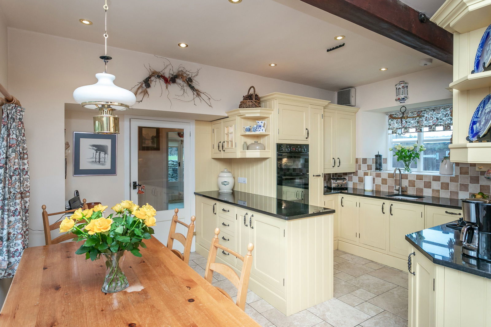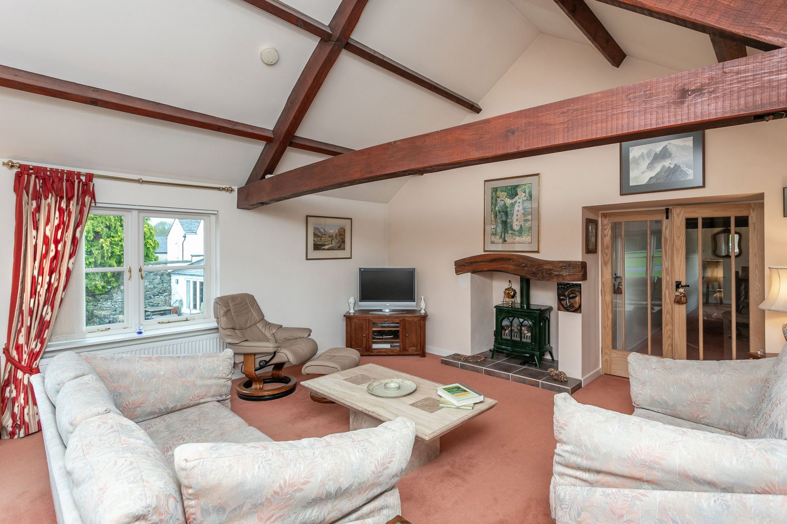 Fitted carpets, curtains, curtain poles, blinds, light fittings, shed, integral kitchen appliances and free-standing washer and drier are included in the sale. Many items of furniture are available to purchase, please ask the Agent.