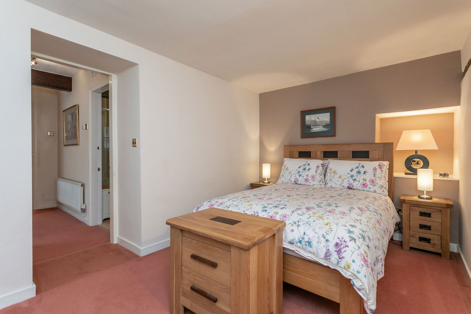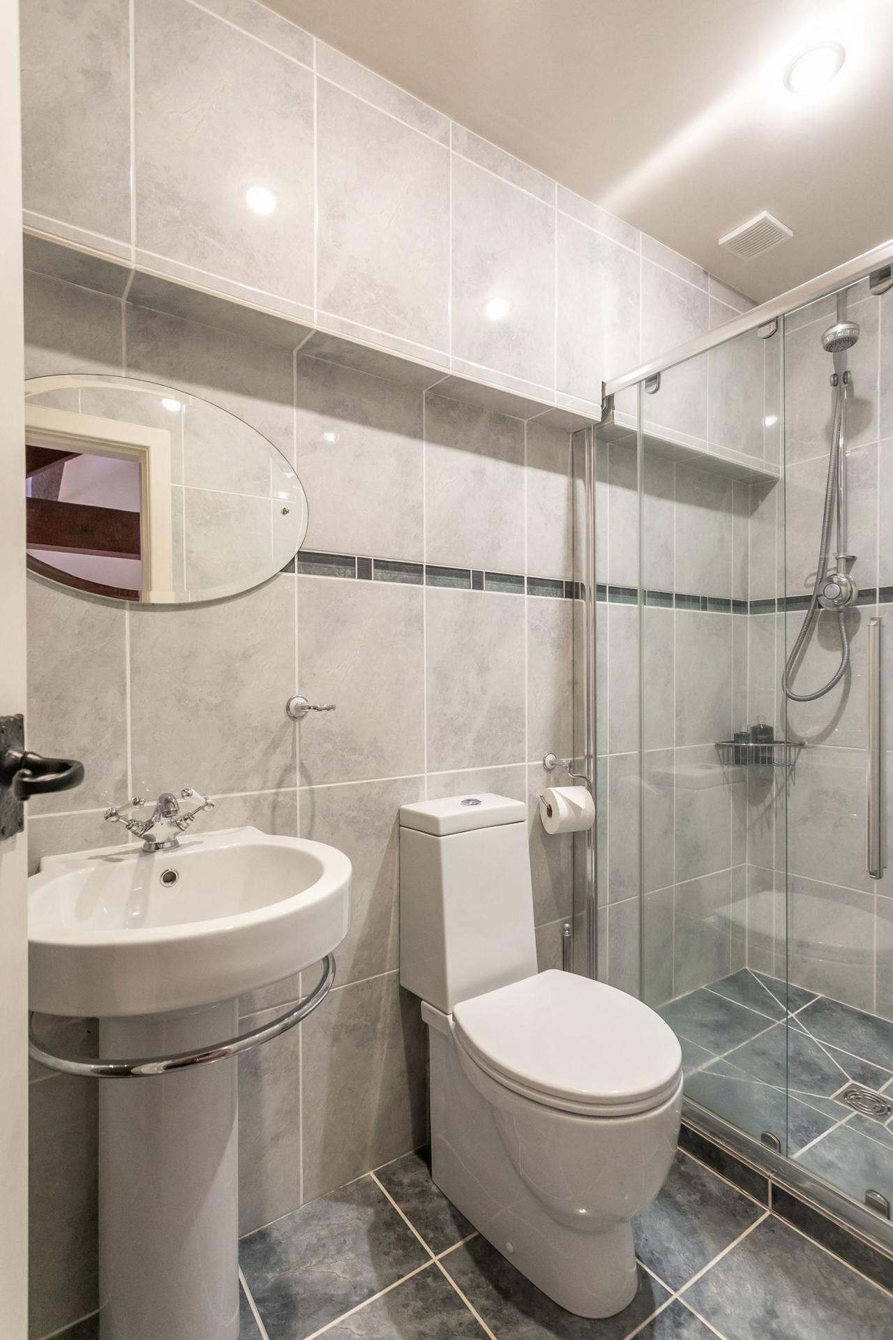 Parkgate Cottage has a unique layout which has been designed to fully embrace and maximise enjoyment of the extra special views and also offer flexibility with regard to sleeping arrangements. The cottage has the majority of the living accommodation on the ground floor with the primary reception room on the first floor; overlooking the racecourse, the wonderfully light and westerly facing sitting room is exceptionally special, not only does it have unrivalled views of the final straight which immediately draw you forward upon entering the room, but the ceiling dramatically rises up to the roof apex and there are exposed timbers and a welcoming gas stove. Trust us, invitations will be greatly sought by your family and friends to visit, especially on race days – you’ve front row seats of all the action from this elevated position! The view also takes in the delightful Middlefield Beck, a popular dip for muddy dogs returning from the woods after a walk before getting in their cars for home.The views over the racecourse are very special whatever the day or weather, but during the autumn months they are exceptional when the trees beyond the course display a spectrum of golden and copper tones. Also facing due west, the second reception room is the garden room – a lovely day room which has French windows opening to the courtyard garden. Enjoying the evening sun, by lowering the wall of the garden you’d be able to enjoy an aspect to the racecourse, but the privacy is also really rather nice, especially on a busy day in the village. The dining kitchen is a sociable space with plenty of room for a table and with a sizeable window onto the lane it makes the most wonderful place to sit and watch the world go by. The kitchen has an extensive range of cabinets painted in a sunny buttermilk cream with black granite worktops. Well equipped, there is a four ring gas hob, double oven with grill, fridge, freezer and dishwasher. The light utility room has great storage, a door to outside, a sink unit for messy jobs, washing machine and tumble drier (vented externally). Storage space in cottages is often tight, but here an internal passageway has a wall of excellent cupboards as well as a downstairs cloakroom. There are three double bedrooms, all of which have their own private shower rooms. Giving the option for single level living is the ground floor suite where a double bedroom is linked to a shower room with a dressing room. The remaining two bedrooms are both on the first floor and have ceilings rising to the roof apex with exposed characterful timbers. Both have ensuite shower rooms.