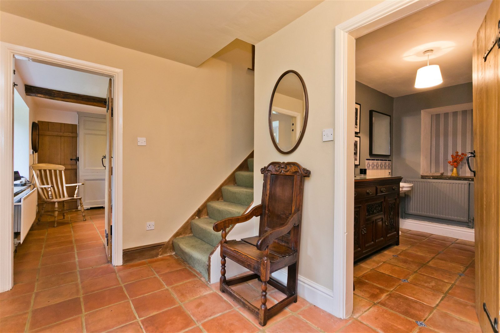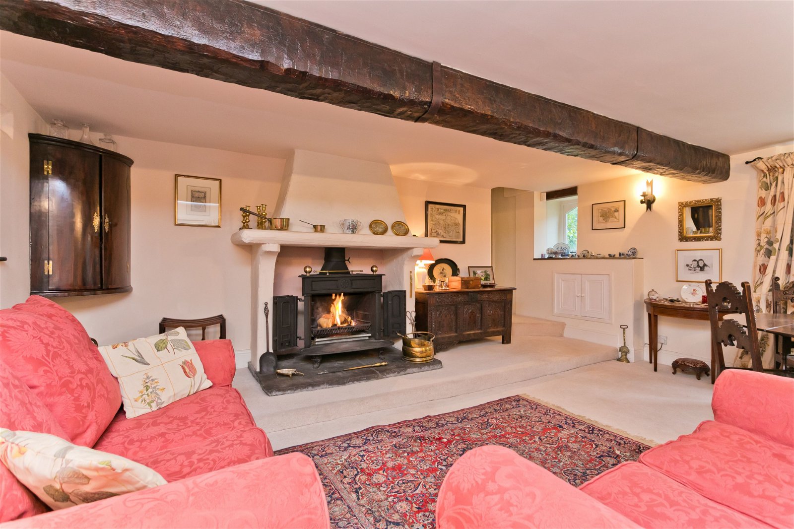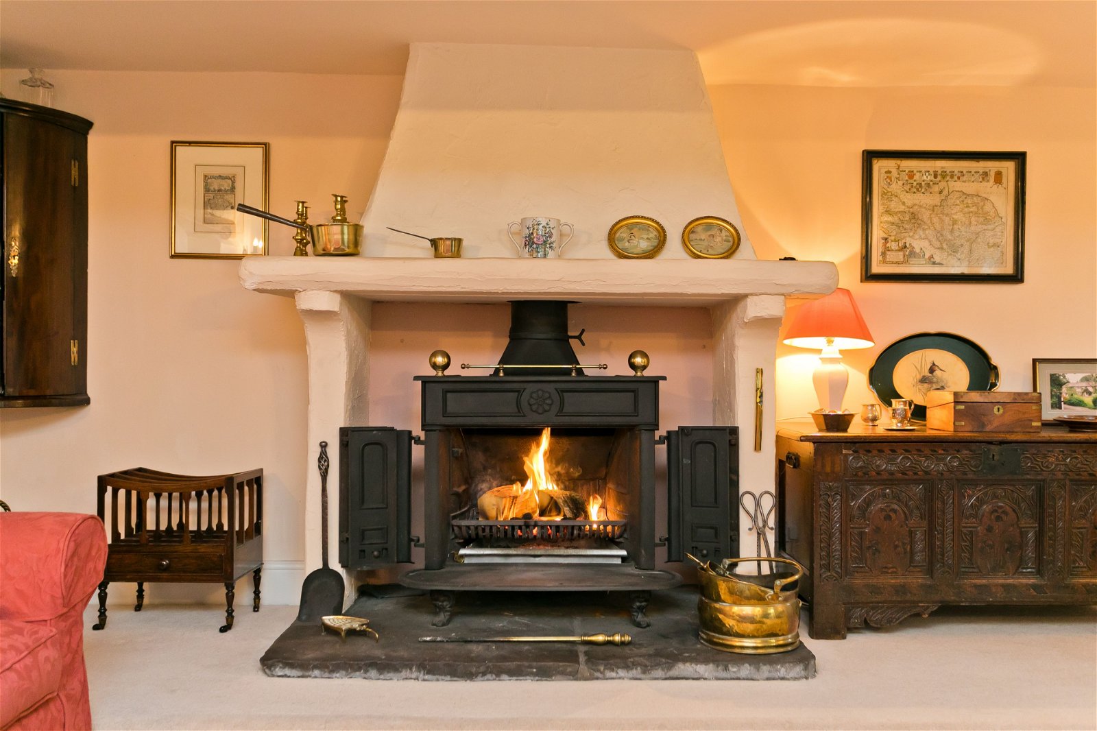 The sitting room is located off the kitchen; this large formal reception space centred around a unique and fitting antique multi-fuel stove, set upon a stone flagged hearth. Further charming features include lintels and matching lancet French doors that lead out onto the front. Completing the ground floor accommodation is the versatile home office which can be reached from both the sitting room and integral garage. It enjoys a lovely private aspect over the enclosed courtyard to the rear of the property and was previously a utility and boot room.