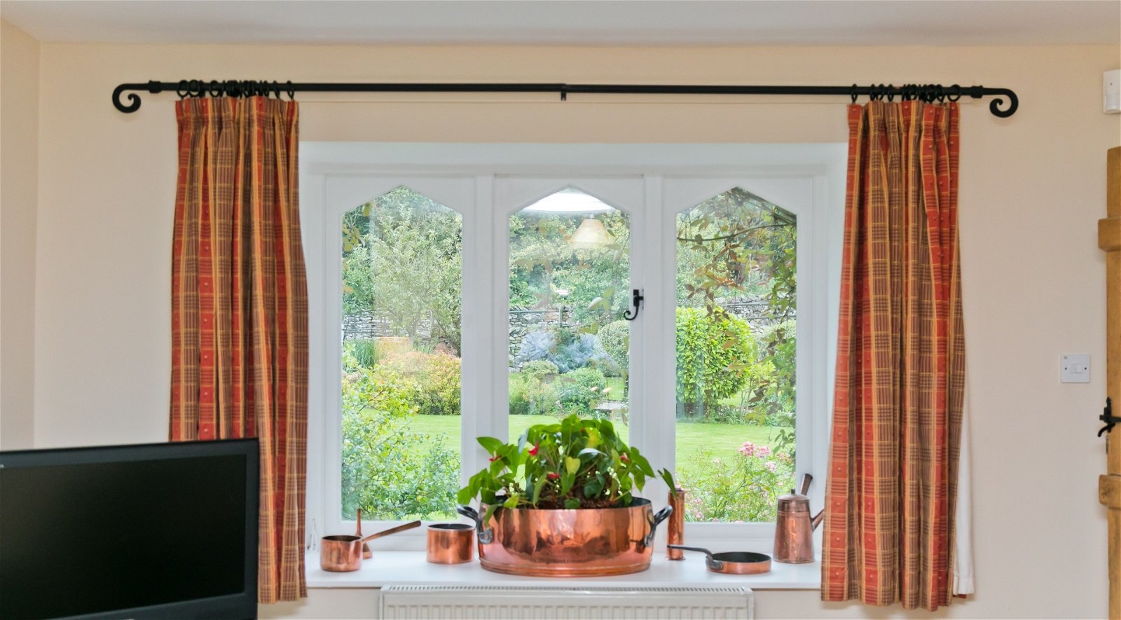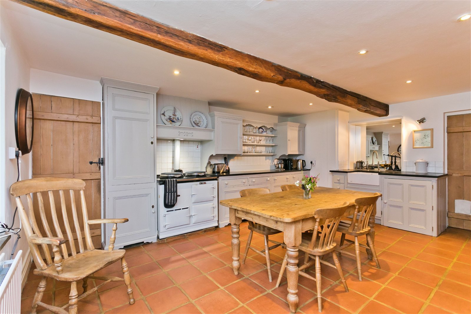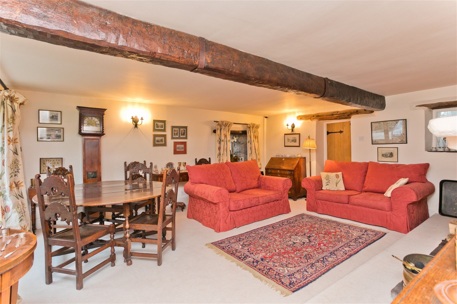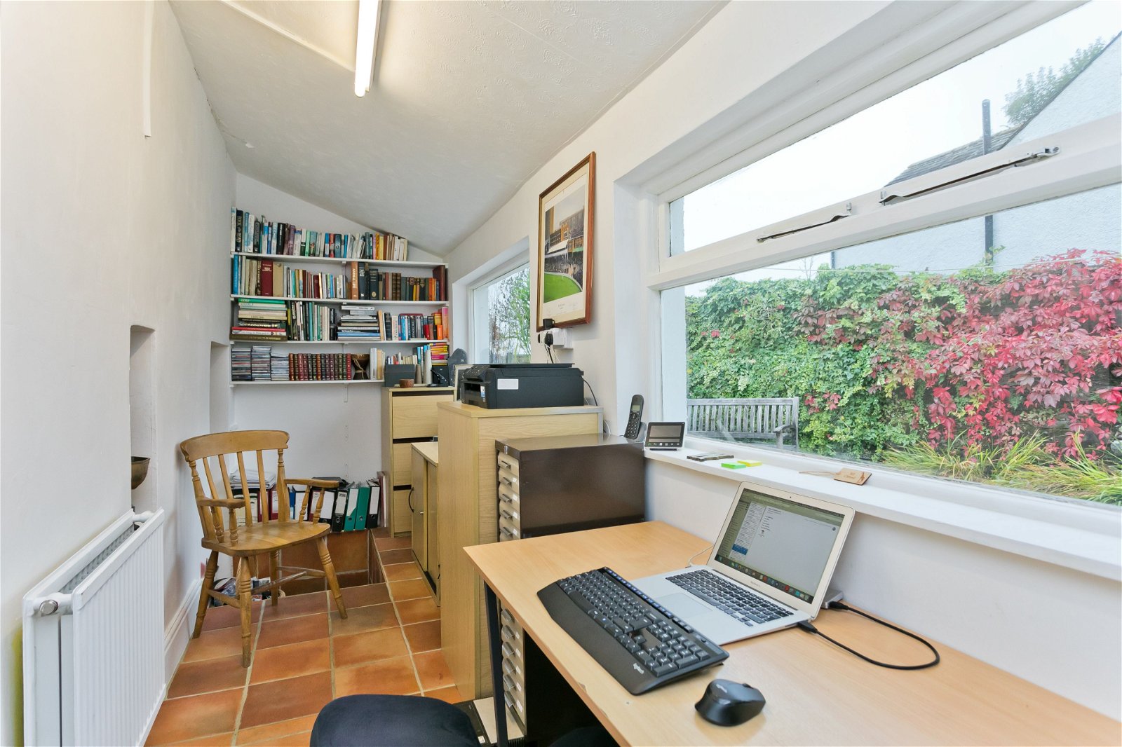 The sitting room is located off the kitchen; this large formal reception space centred around a unique and fitting antique multi-fuel stove, set upon a stone flagged hearth. Further charming features include lintels and matching lancet French doors that lead out onto the front. Completing the ground floor accommodation is the versatile home office which can be reached from both the sitting room and integral garage. It enjoys a lovely private aspect over the enclosed courtyard to the rear of the property and was previously a utility and boot room.