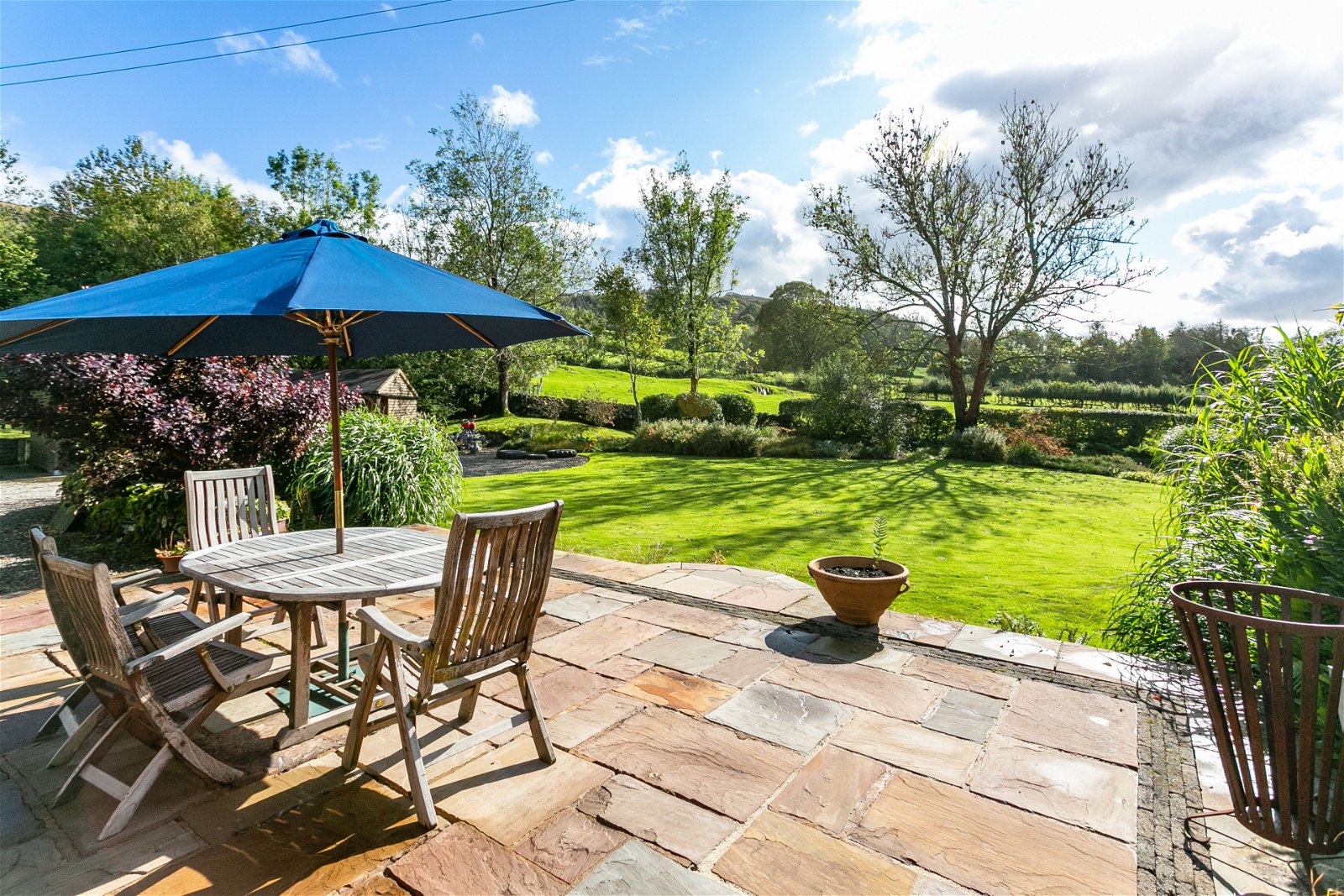 shrubbery, plants and trees. The stone wall boundary ties in beautifully with the surrounds, so the garden becomes an extension of the rolling countryside beyond. The large stone flagged patio is perfect for alfresco dining and outdoor entertaining in the summer months. It continues around to the enclosed flagged courtyard accessed from the garage.