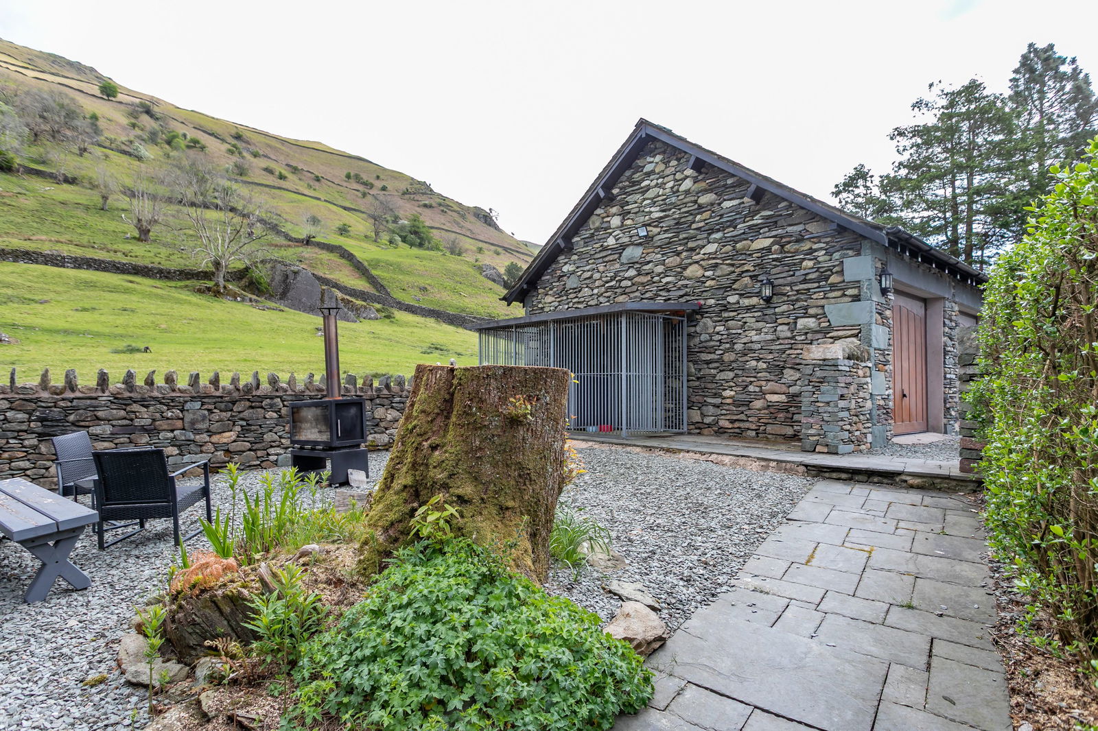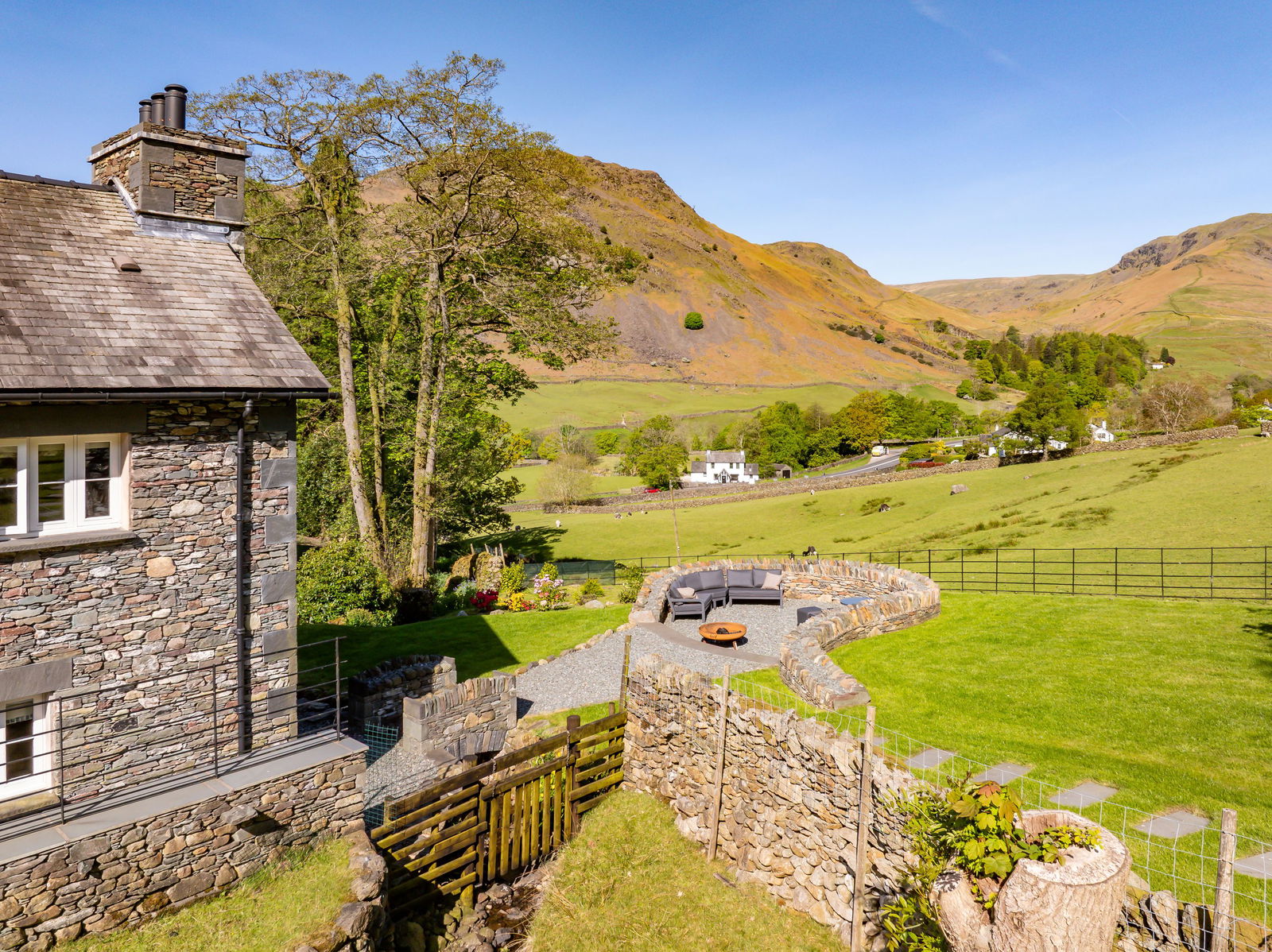 Sitting out here in the garden is incredibly relaxing, surrounded by nature with fabulous views of the immediate patchwork of fields interspersed with craggy rock outcrops. Beyond the undulating fields, the fells rise sharply, ensconcing the valley and making it feel sheltered and a true haven.