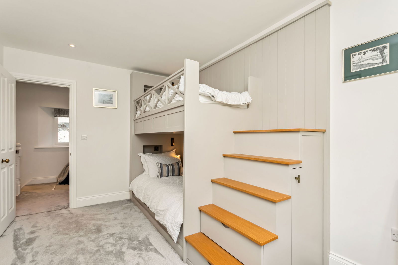 All furniture in the third double is excluded but separately available and in the fourth and final double room, the bunk beds with integral illuminated cubby holes, outer steps and storage cupboard is all included. Should you wish, the matching desk and shelving are available separately.