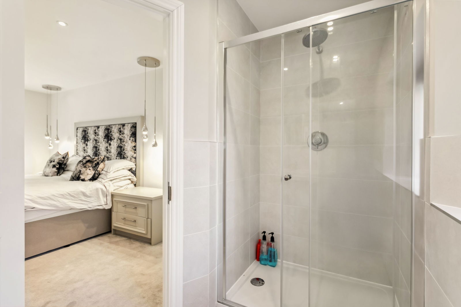 The bedroom furniture has been commissioned from BJD Bespoke Interiors, Cheshire. Some items are included in the sale, others separately available. The principal bedroom is elegantly fitted with a range of bespoke wardrobes with a central dressing table. Matching sets of bedside drawers and the headboard are available separately. The ensuite shower room has a large rainfall shower, floating wash basin and WC. An illuminated mirror fronted cabinet provides storage. The second bedroom has an open fronted wardrobe with upholstered bench and storage compartments. The upholstered headboard with integral illuminated side tables is available separately. This bedroom has the advantage of an ensuite shower room with a large rainfall shower, floating wash basin and WC.