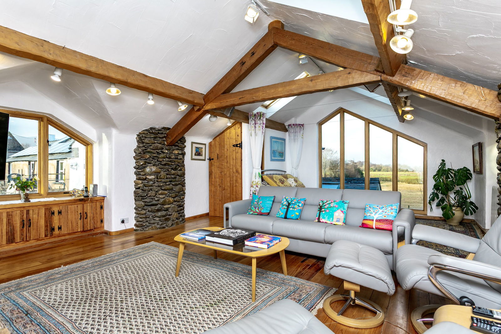 From the lane, the house embraces traditional Lake District architectural aesthetics, quaint and characterful. From the rear garden and field, it might be a different property and has an altogether more contemporary appearance with extensive glazing which not only creates light and airy rooms but also enables thorough appreciation of the views of the surrounding countryside, the Old Man of Coniston and neighbouring Lakeland fells, stunning at any time of the year, but particularly so when there is snow on the tops.