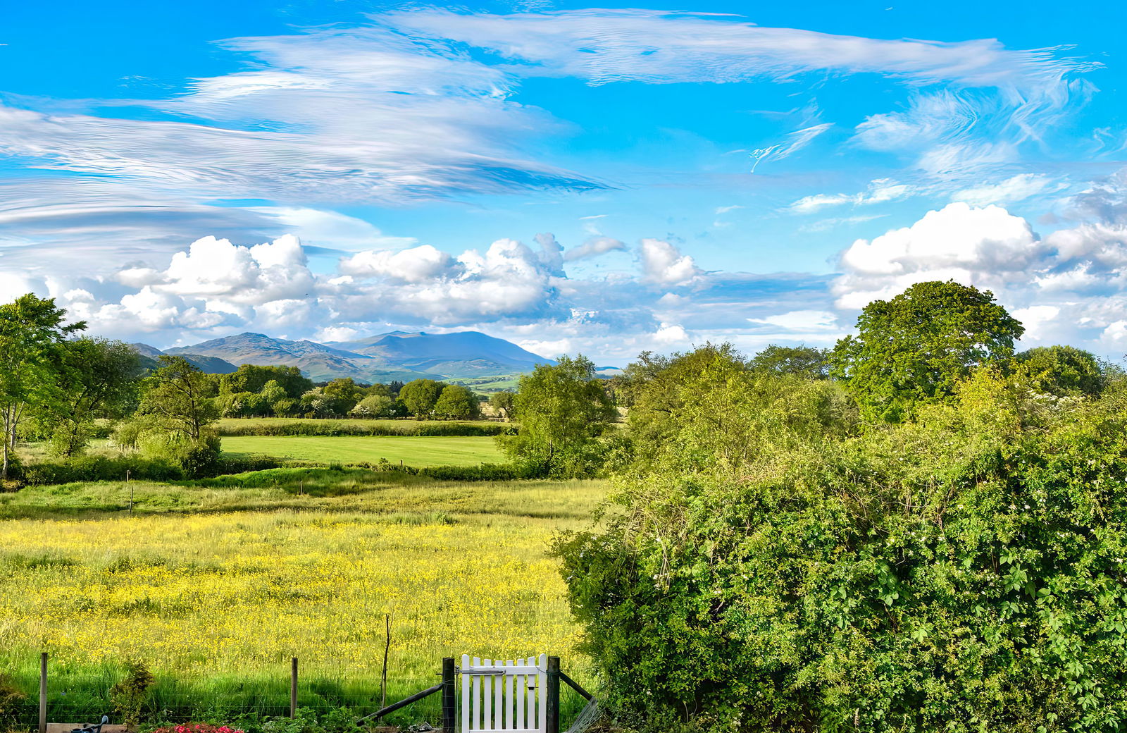 Mindful planting encourages the meadow to be a haven for nature with planted indigenous hedges and trees around its periphery. And whilst it’s the view of the Old Man of Coniston and the adjoining fells (Black Combe, White Combe, Dow Crag, Brown Pike and Stickle Pike) that really are to be celebrated, there is a great view of the house from the far side of the field back towards the property and it’s colourful garden. There are both pedestrian and vehicular gates to the garden from the field and vehicular access from the field onto the lane.