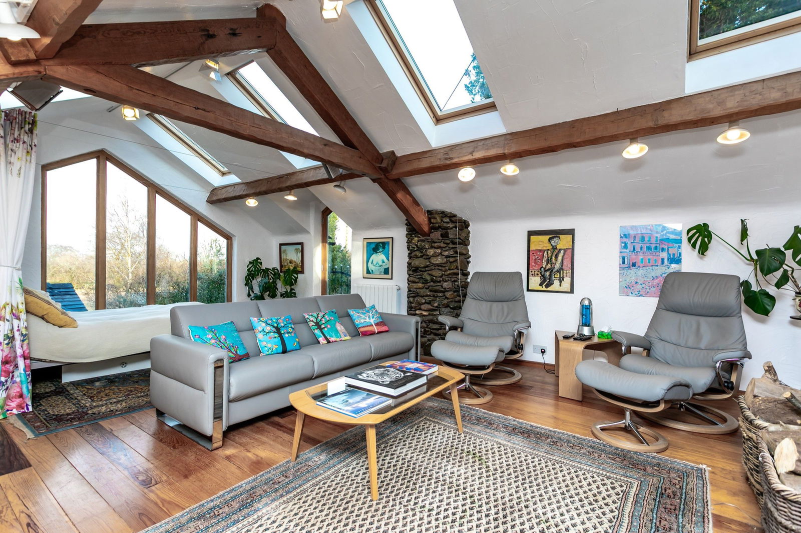 Follow us as we lead you round this one off home - the front porch is adorned with an unusual winter flowering clematis and opens to a small hall off which is a downstairs cloakroom. A door leads into the oldest part of the house (believed to date back to 1730), the atmospheric heavily beamed reception room runs front to back and is split level with space to both dine and relax in front of the multifuel stove. A half cellar now makes an effective wine and housekeeping store. The boot room is a side entrance and used on an everyday basis as there’s room for coats and outside footwear. From here, walk into the kitchen, the breathtaking view through the picture window immediately draws you forward, the central island and breakfast bar making a lovely place to perch and chat as supper is slowly stirred on the hob. Double glass doors open to the light drenched garden room, a room for all year round use with three walls of triple glazing to bring the outdoors in whatever the weather.