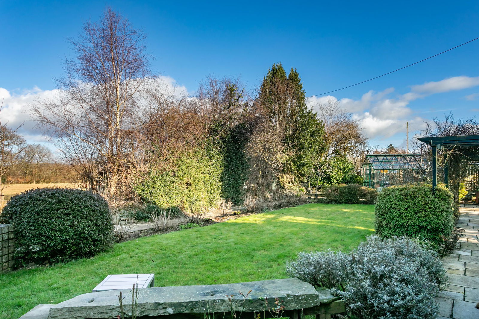 Most of the garden is to the rear of the house; immensely private, it adjoins the field and commands wonderful views. The garden has been landscaped into separate ‘rooms’, divided and connected by a wooden pergola (graced by honeysuckle, clematis and roses), an arbour and clematis clad trellising.