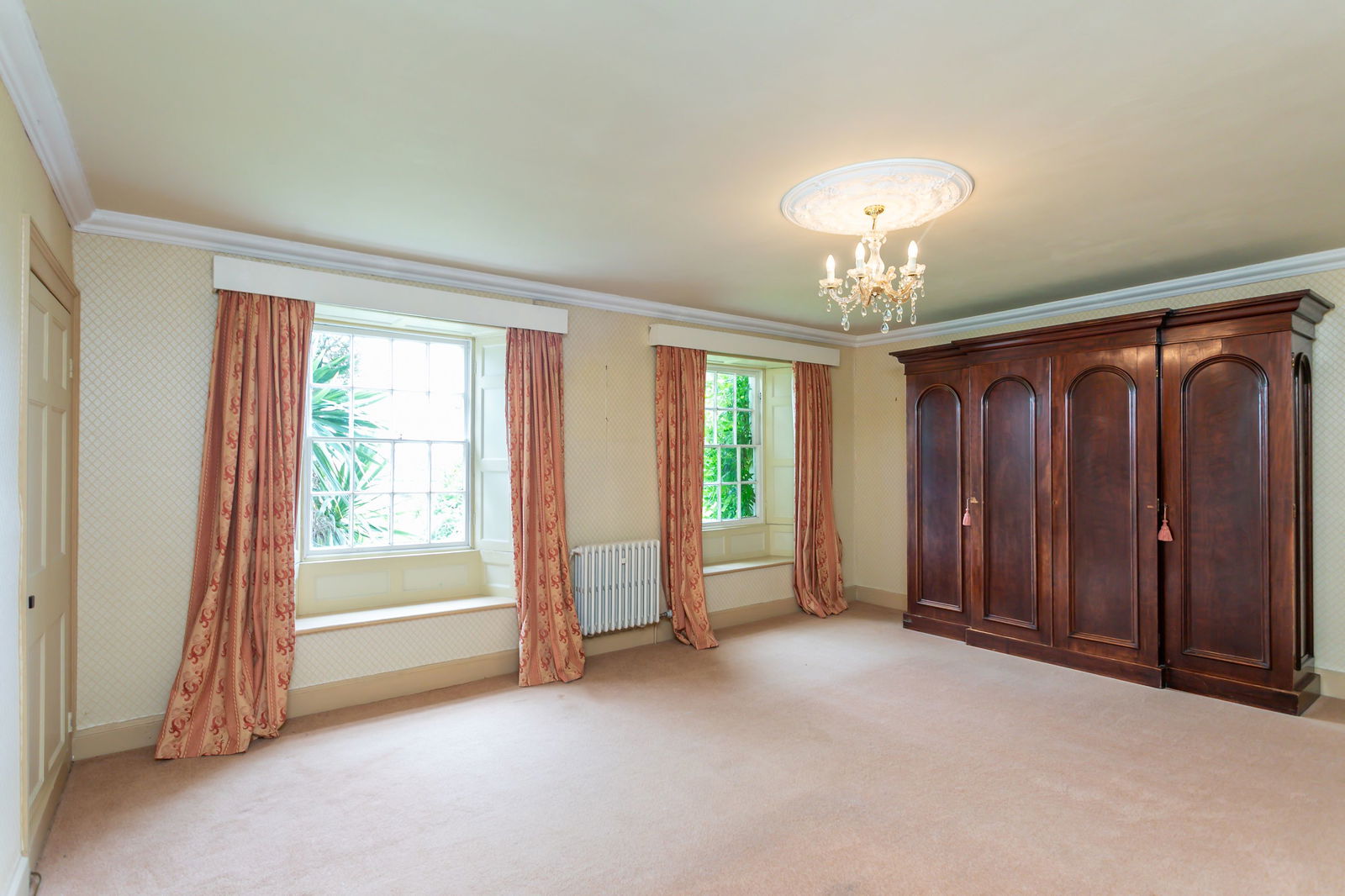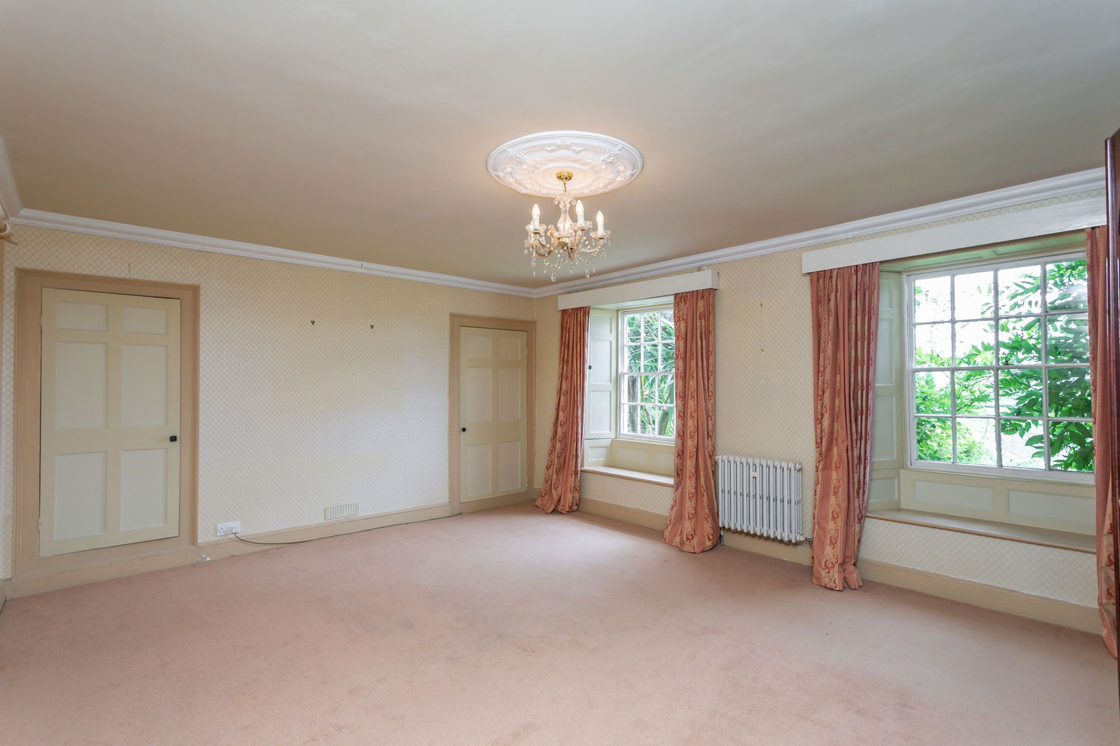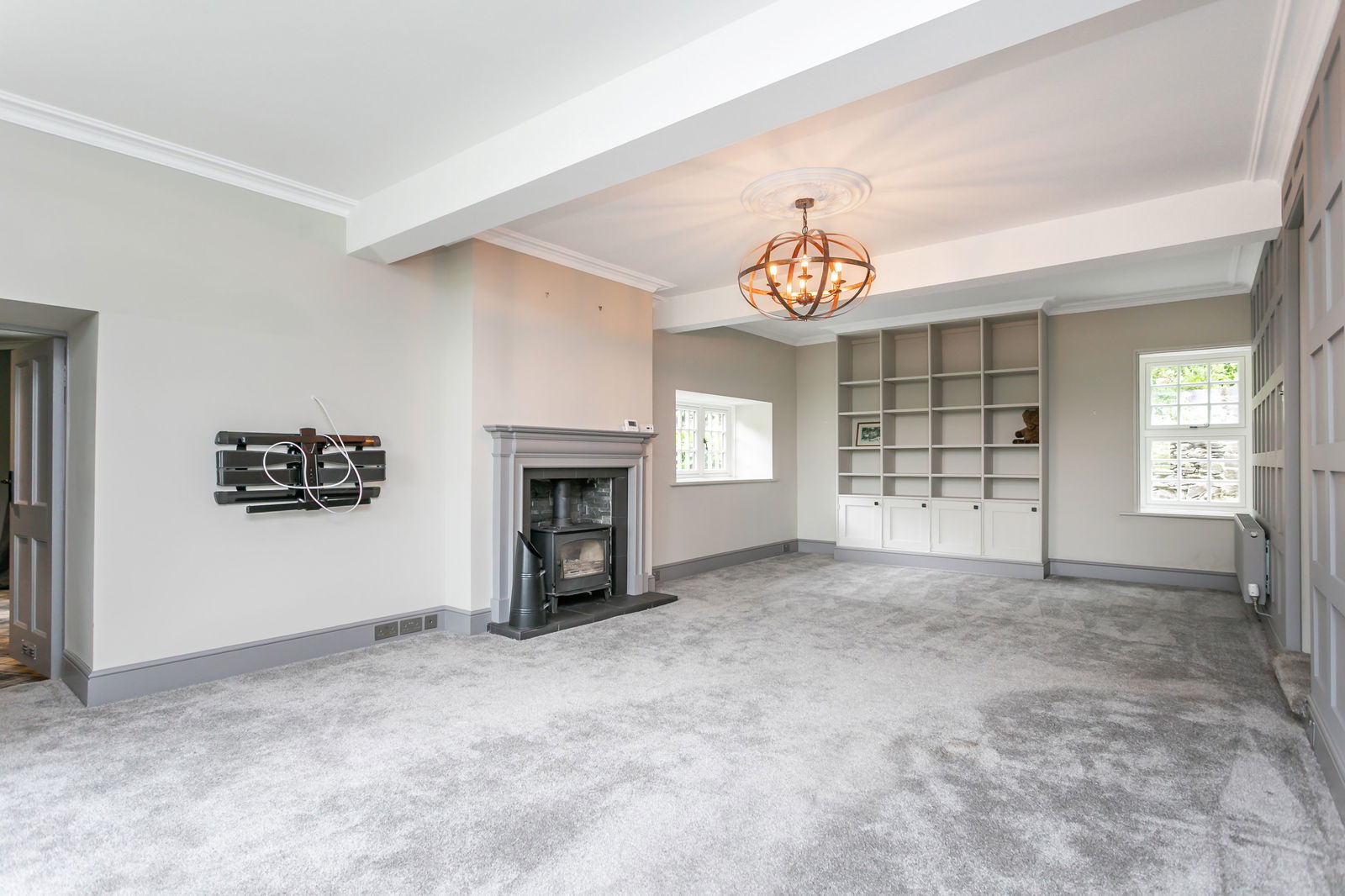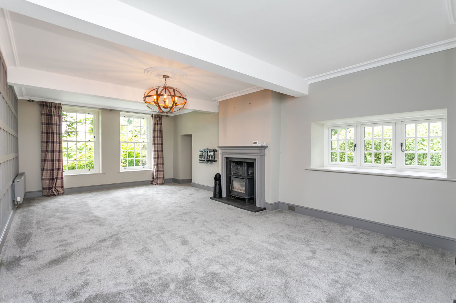 Fitted carpets, curtains, curtain poles, blinds, light fittings and domestic appliances as follows: range cooker (double oven, grill, warming drawer) with extractor fan over (both Rangemaster), larder fridge and tall freezer (both Samsung), NEFF dishwasher, Zanussi microwave and Hotpoint washer dryer.
