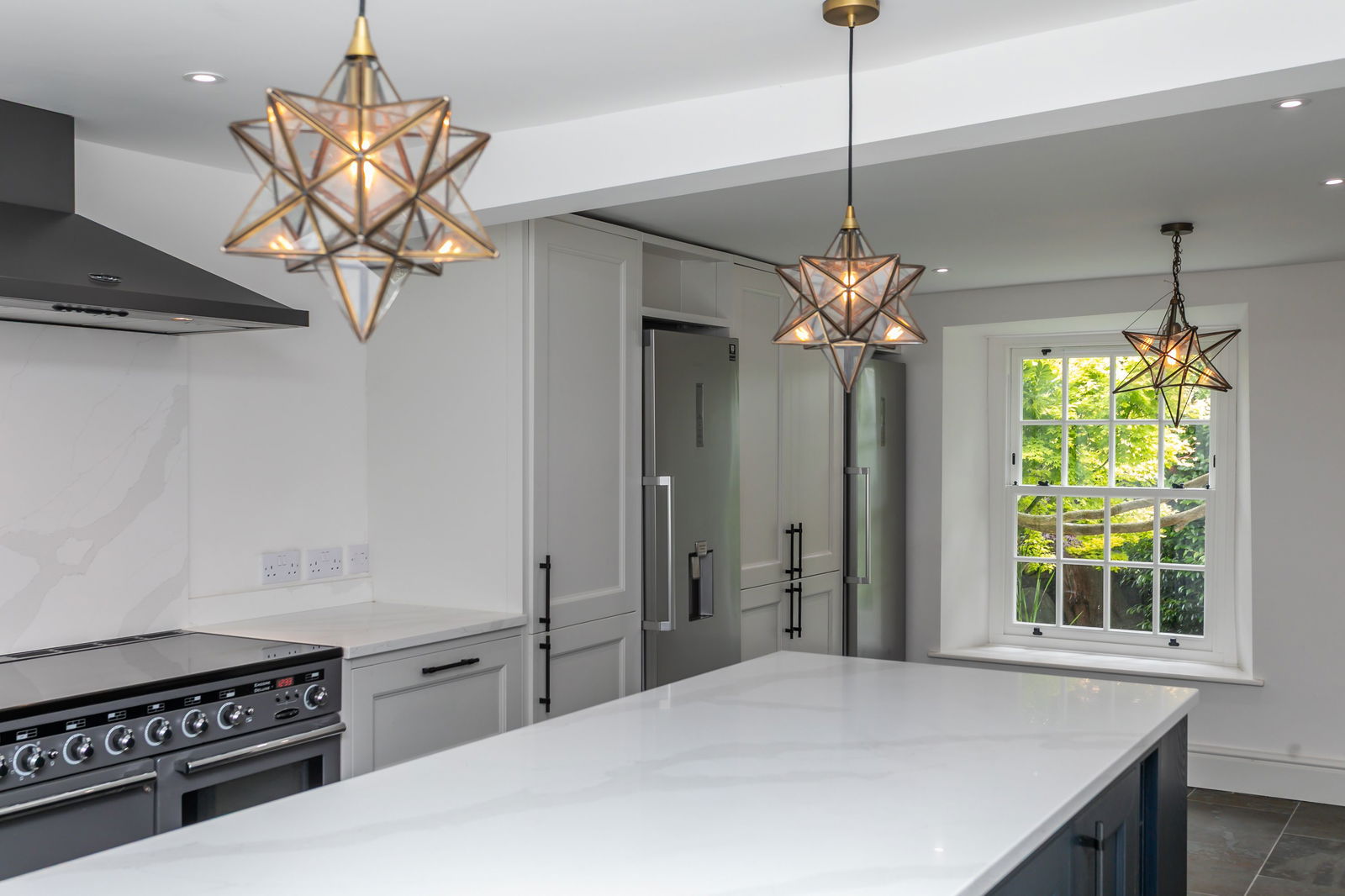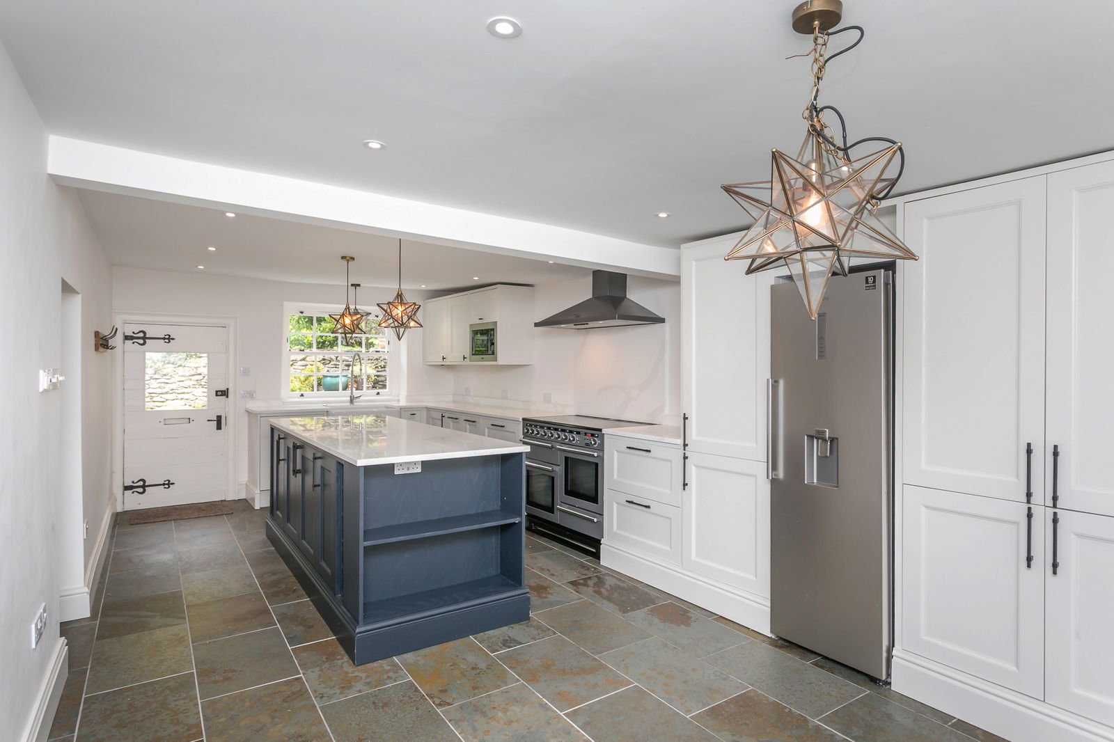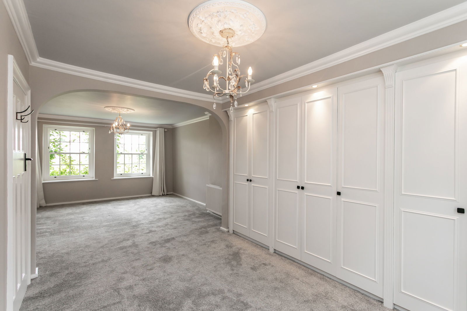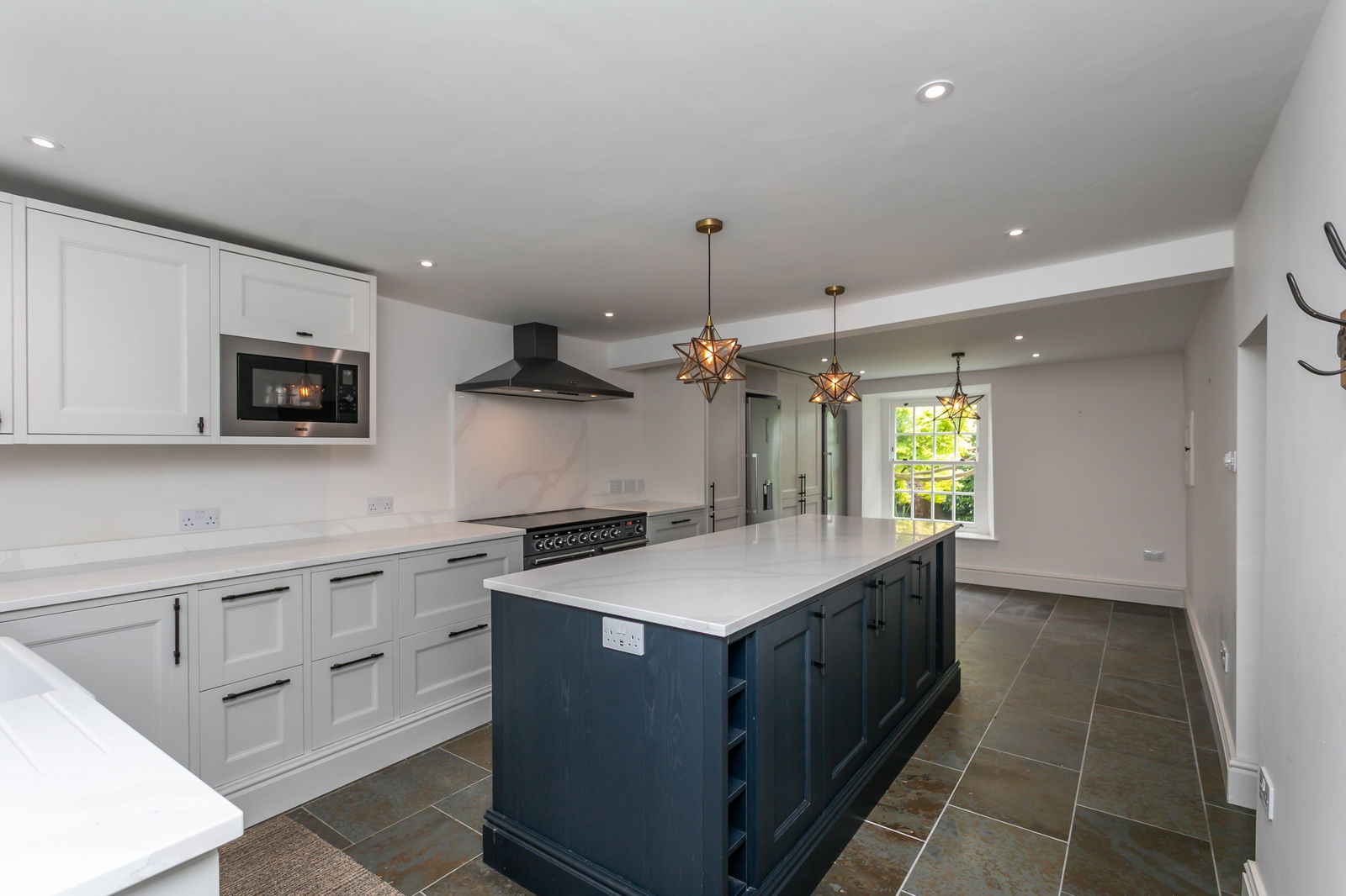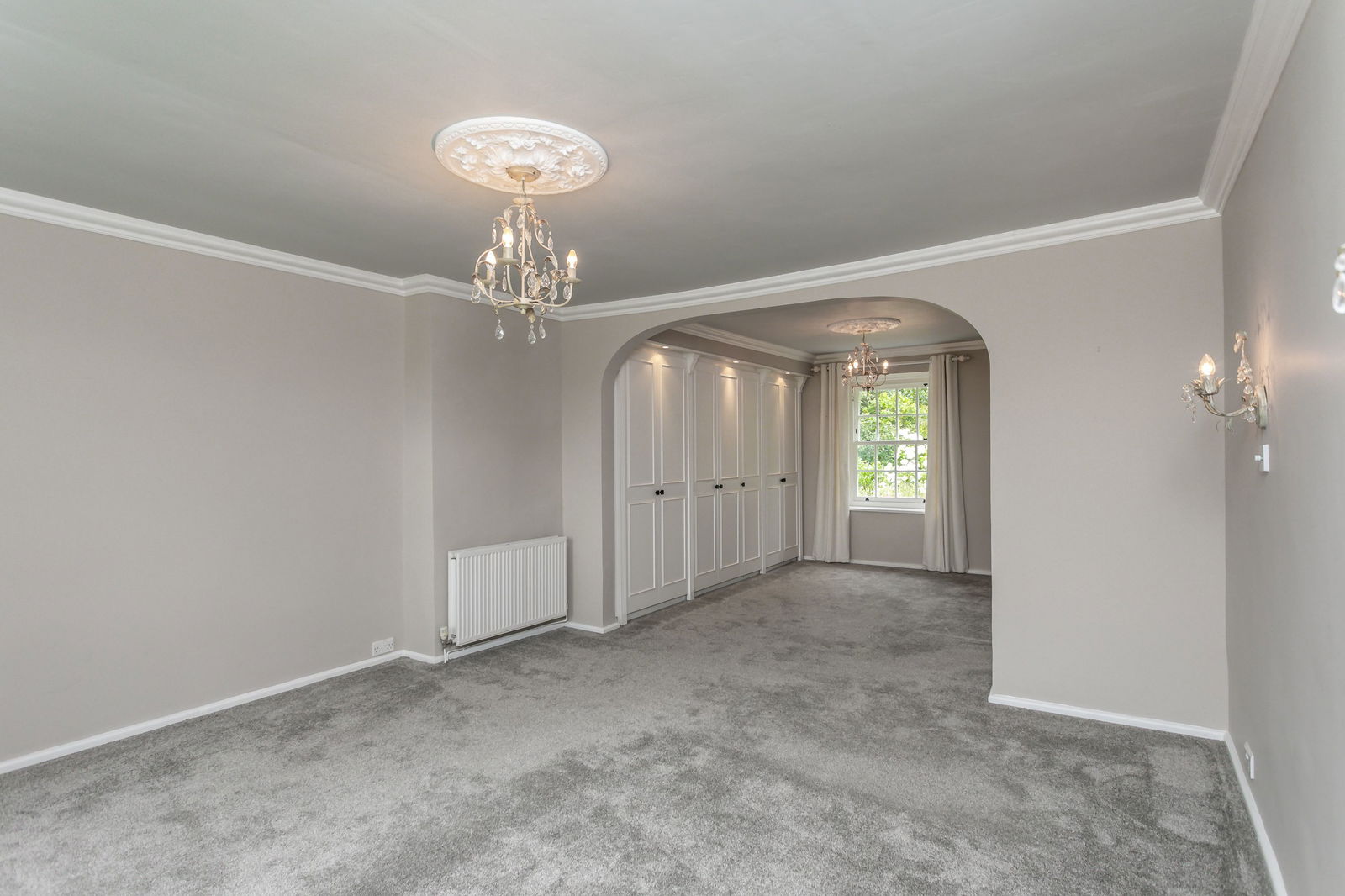 Fitted carpets, curtains, curtain poles, blinds, light fittings and domestic appliances as follows: range cooker (double oven, grill, warming drawer) with extractor fan over (both Rangemaster), larder fridge and tall freezer (both Samsung), NEFF dishwasher, Zanussi microwave and Hotpoint washer dryer.