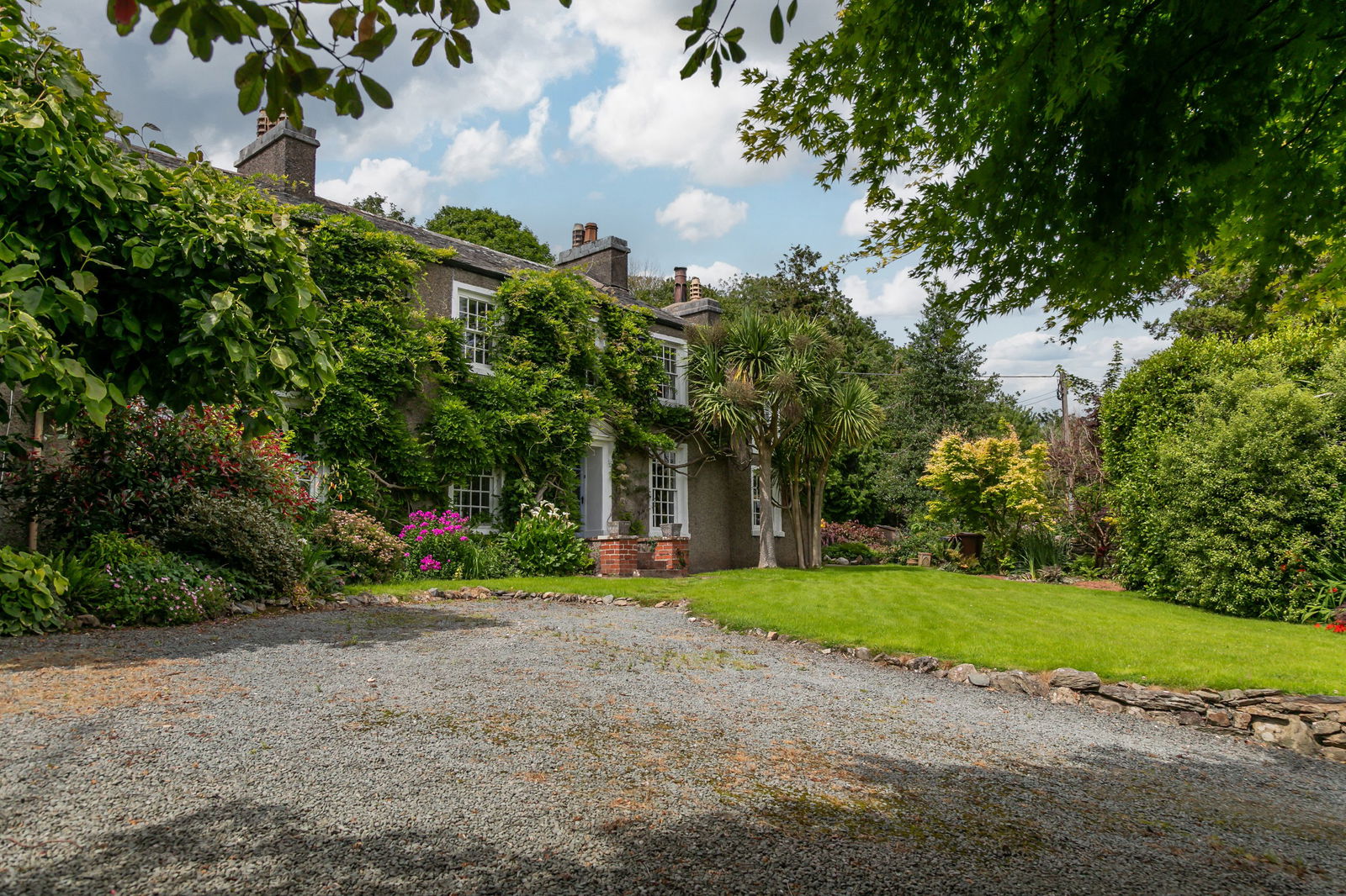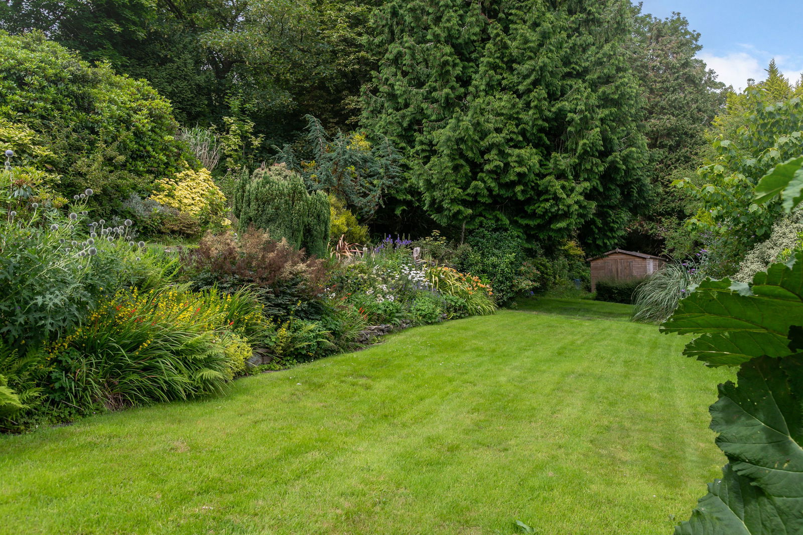 Extending to c. 0.72 acre, they have been landscaped across three tiers to take advantage of the gently sloping site. Well established planting demonstrates horticultural skill and knowledge with a wide number of different species of the same plants and flowering shrubs including a large magnolia tree, a wide variety of colourful rhododendrons, azaleas and hydrangeas, Japanese maples, camellias and more unusual giant Chilean rhubarb and palms… a garden for all seasons, there is a vast array of foliage and colour throughout the year. Several private and secluded seating areas have been built to catch the sun at different times of the day and allow appreciation of the unique views, creating spots for morning coffee and evening gatherings.