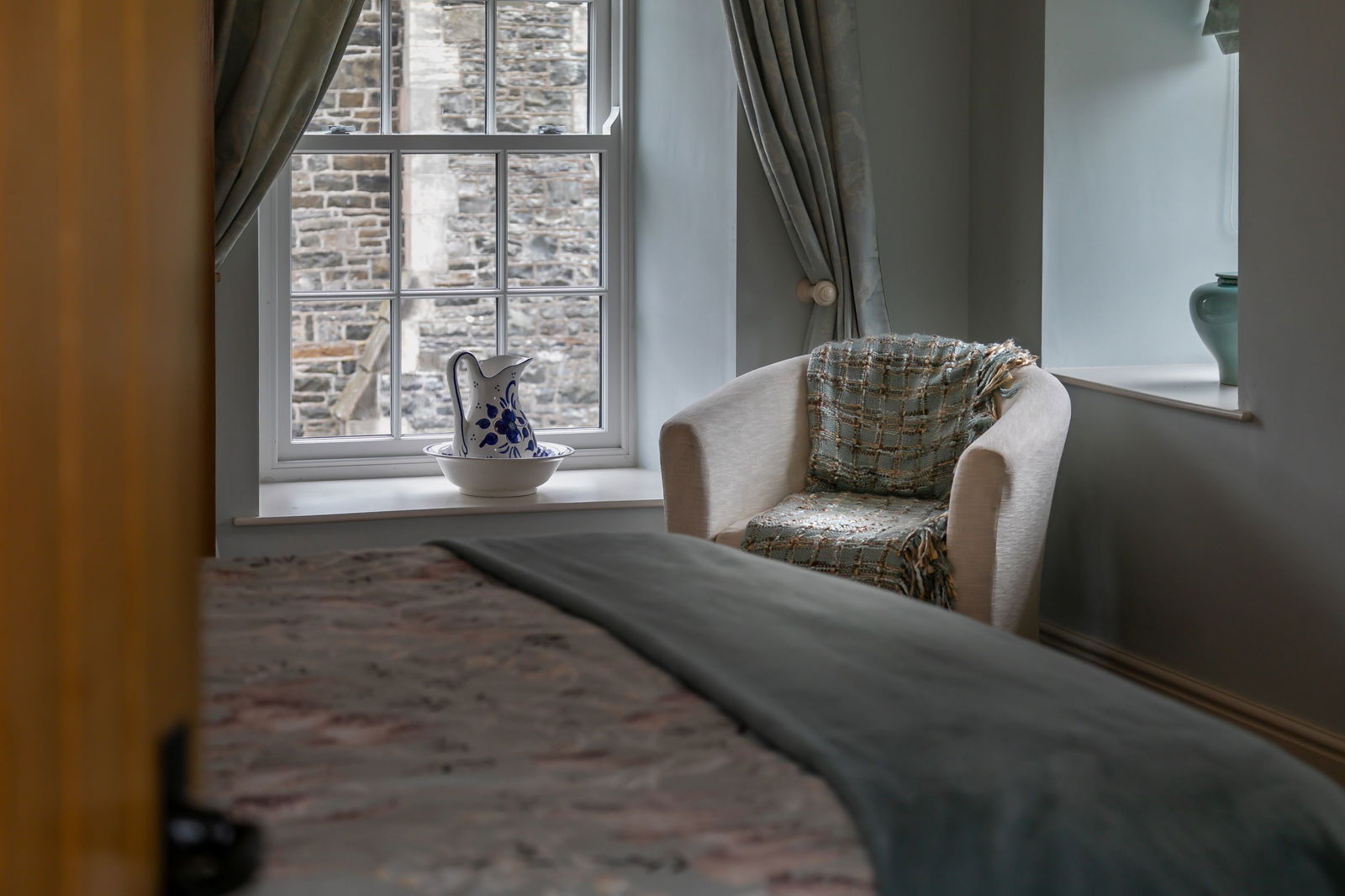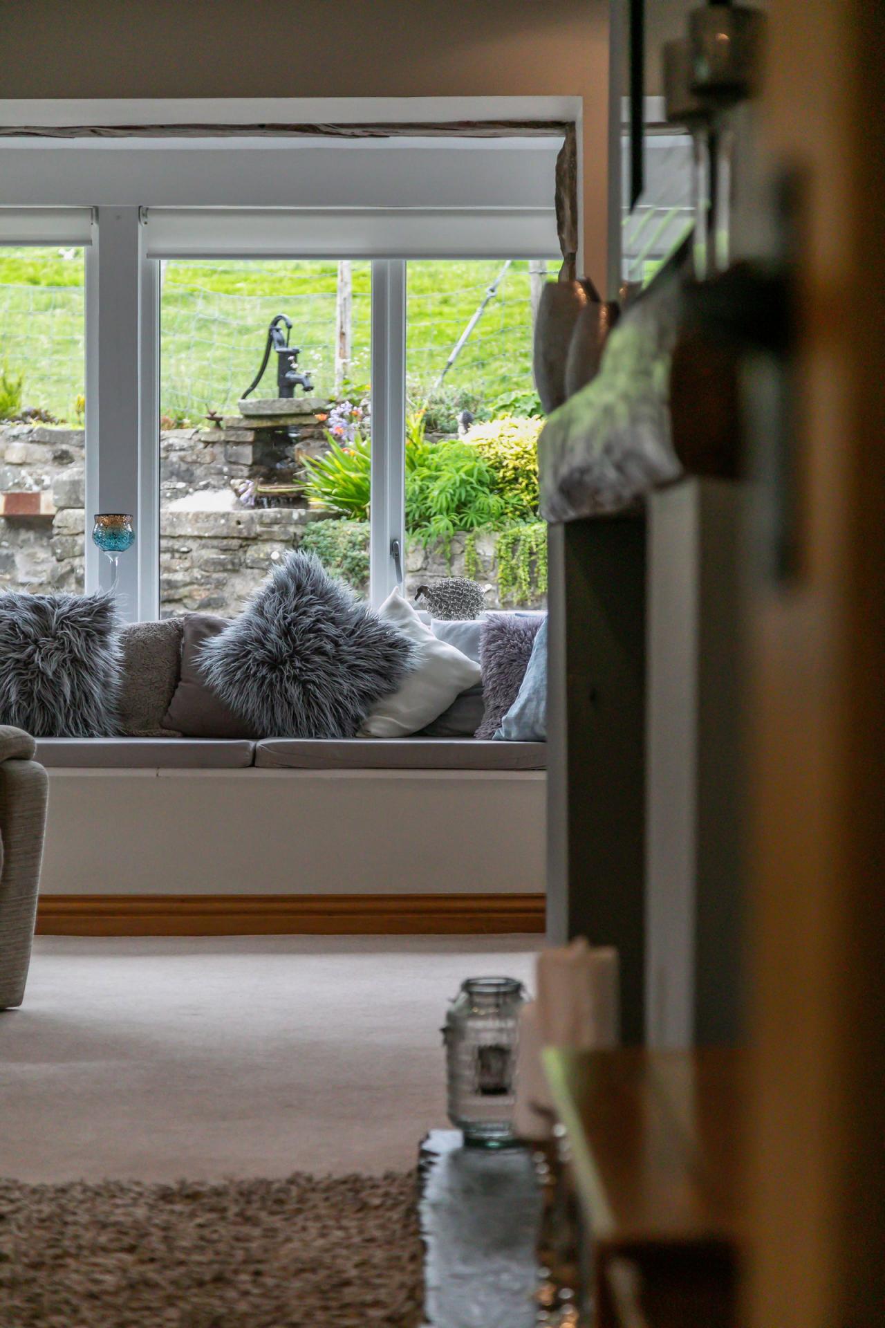 The views are impressive, unspoiled and restful. The view north is straight out onto the sloping fields where cows and sheep graze and in spring there are lambs. Looking south and the view over the roof top of the manor house is of the upper reaches of Combe and Holme Fells.