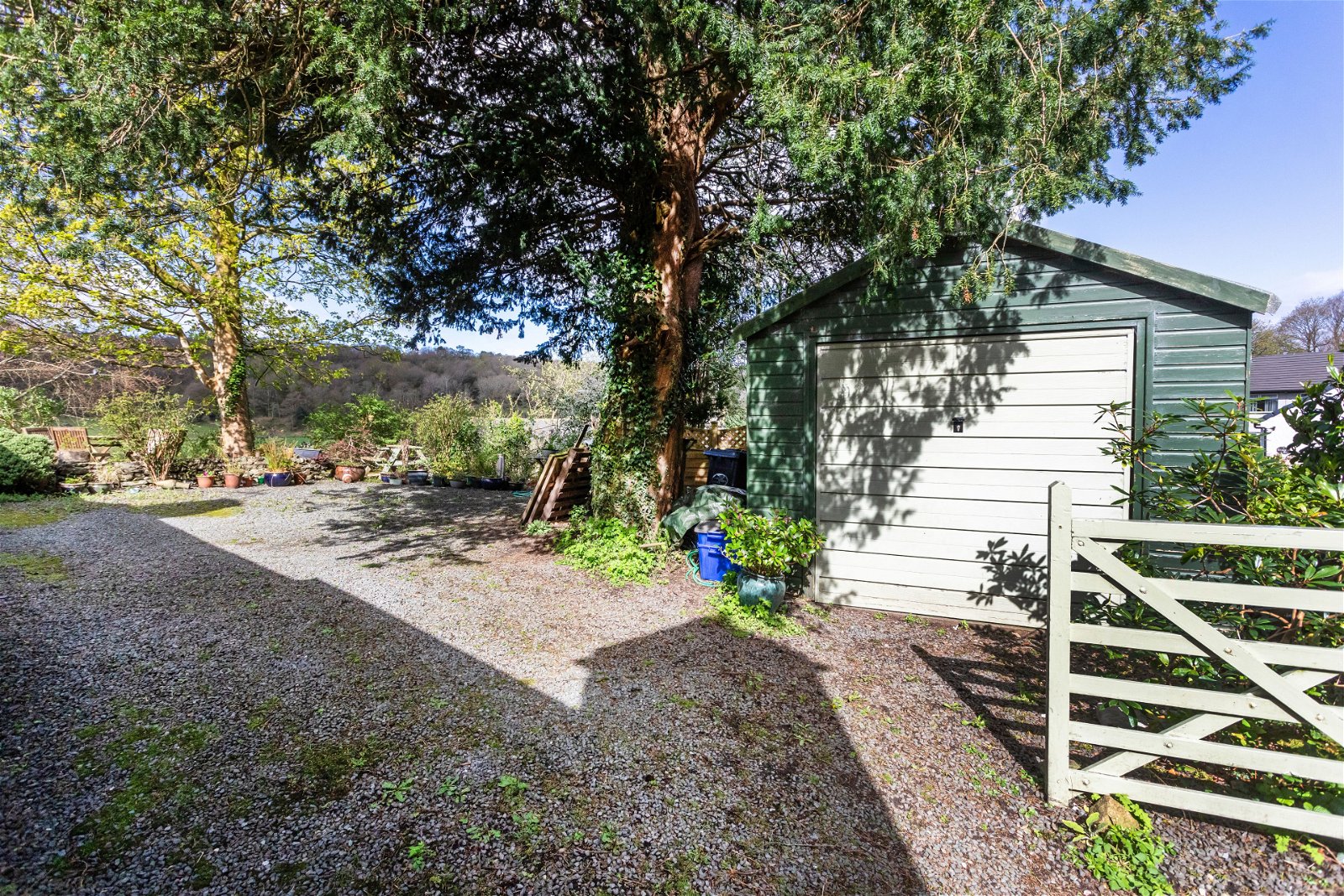 There are informal gardens to three sides of the property. The drive is gated and there is a detached single garage with off road parking for two or three cars. The garage has plumbing for a washing machine.