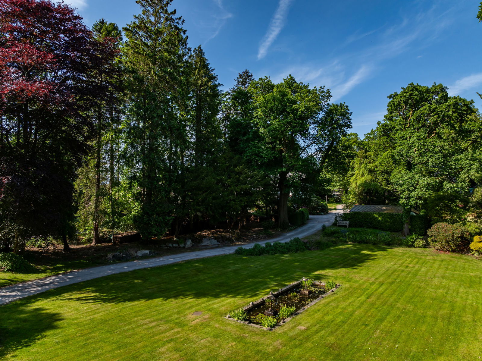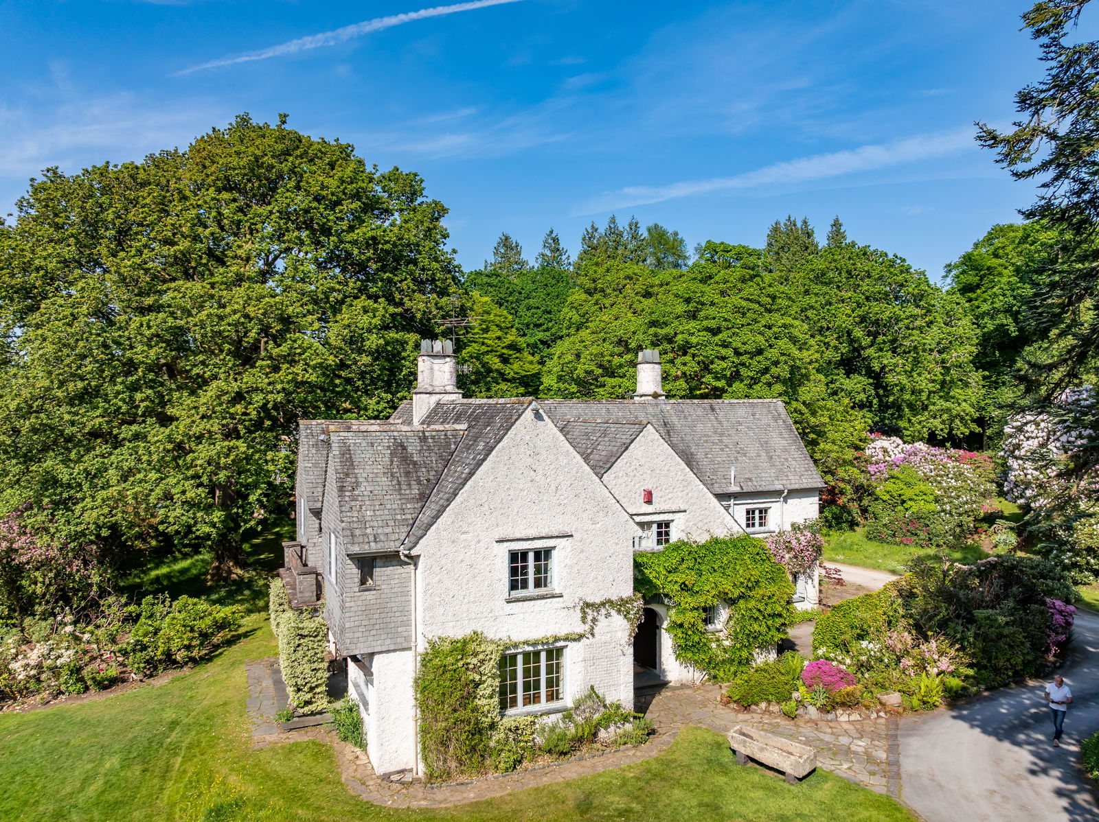 There is a lightly wooded area to the east of the house through which paths meander. One runs alongside a small stream, fed from a small natural pond, the banks crammed with water and shade loving plants. Moss covered rocky outcrops create an adventure playground for children with opportunities for making dens, treasure hunts and games of hide and seek. Beyond the trees is the pedestrian access onto St Mary’s Lane, providing delightful walks up to Windermere village or down to the lake. Woodland lies to the west of the house and runs down to Rayrigg Road. There is separate vehicular access off Birthwaite Road.