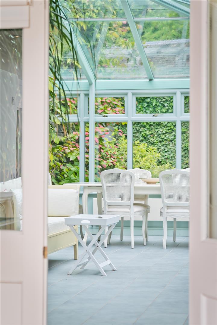 As it stands, the attractive kitchen is well equipped with cabinets and has a traditional double Belfast sink and a practical breakfast seating area. Appliance wise is a Rangemaster cooker, integrated Bosch dishwasher and a microwave. A useful addition, the traditional pantry provides ample storage. The rear hall has a secondary staircase to the first floor and a larder cupboard with external access. The striking conservatory offers lovely views over the garden, with exposed stone wall, internal raised beds and French doors opening to the garden terrace. The games room is a very versatile space having scope to be a ground floor bedroom with ensuite shower room if required for less mobile family members of guests or if you were looking to future proof the house for yourselves. The study is spacious and bright having a useful built in storage cupboard.