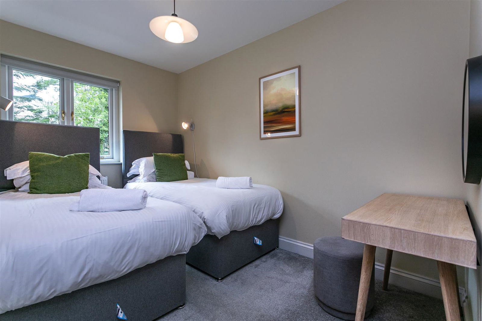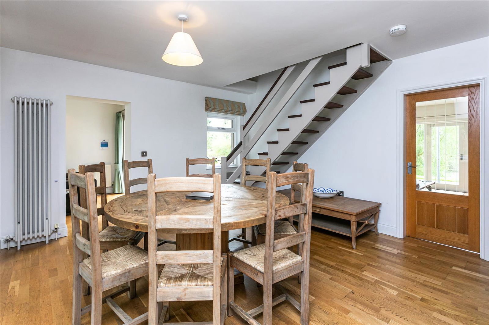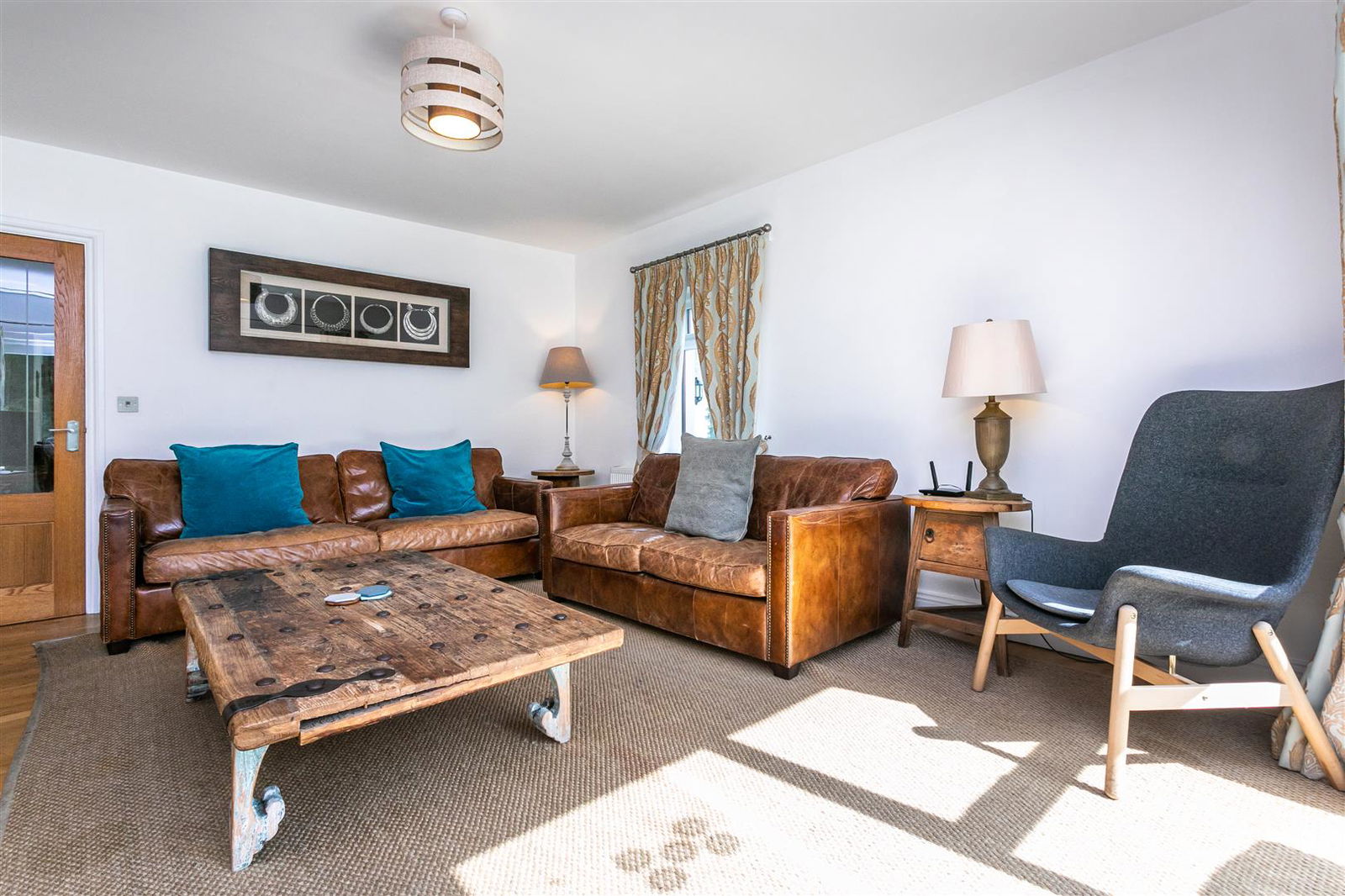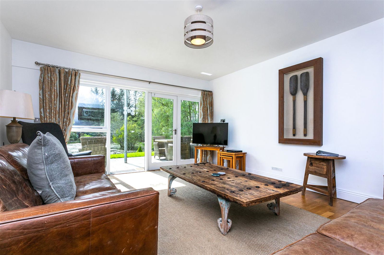 There are two reception rooms, a sitting room and a smaller snug, both are light rooms with glazed doors and picture windows enjoying good views towards the tarn, both have oak flooring. Paving (in places partially sheltered from the balconies above) runs around the house with access out from the sitting room, snug and master bedroom. All of these three rooms look out towards the tarn and surrounding landscaping.