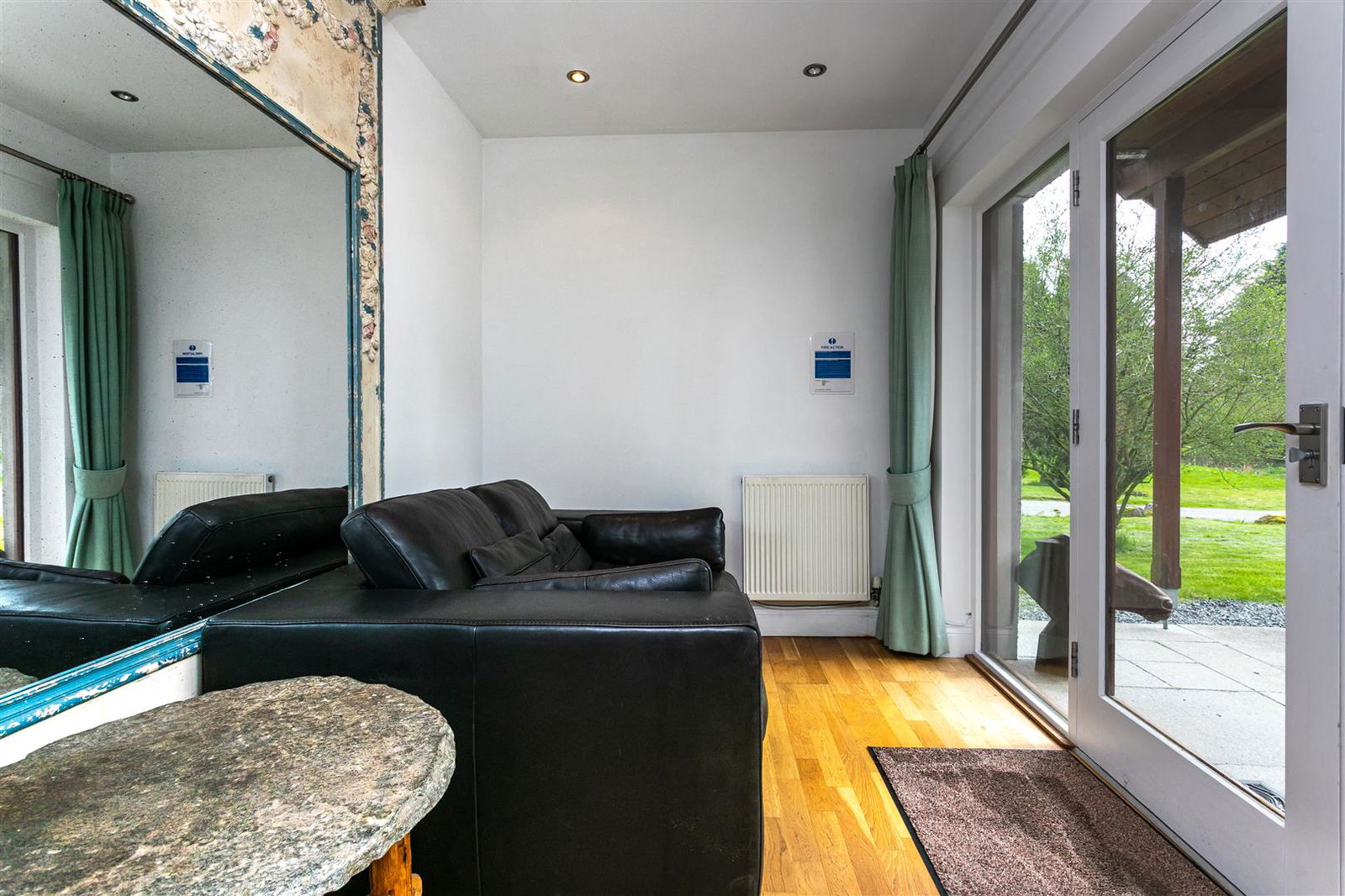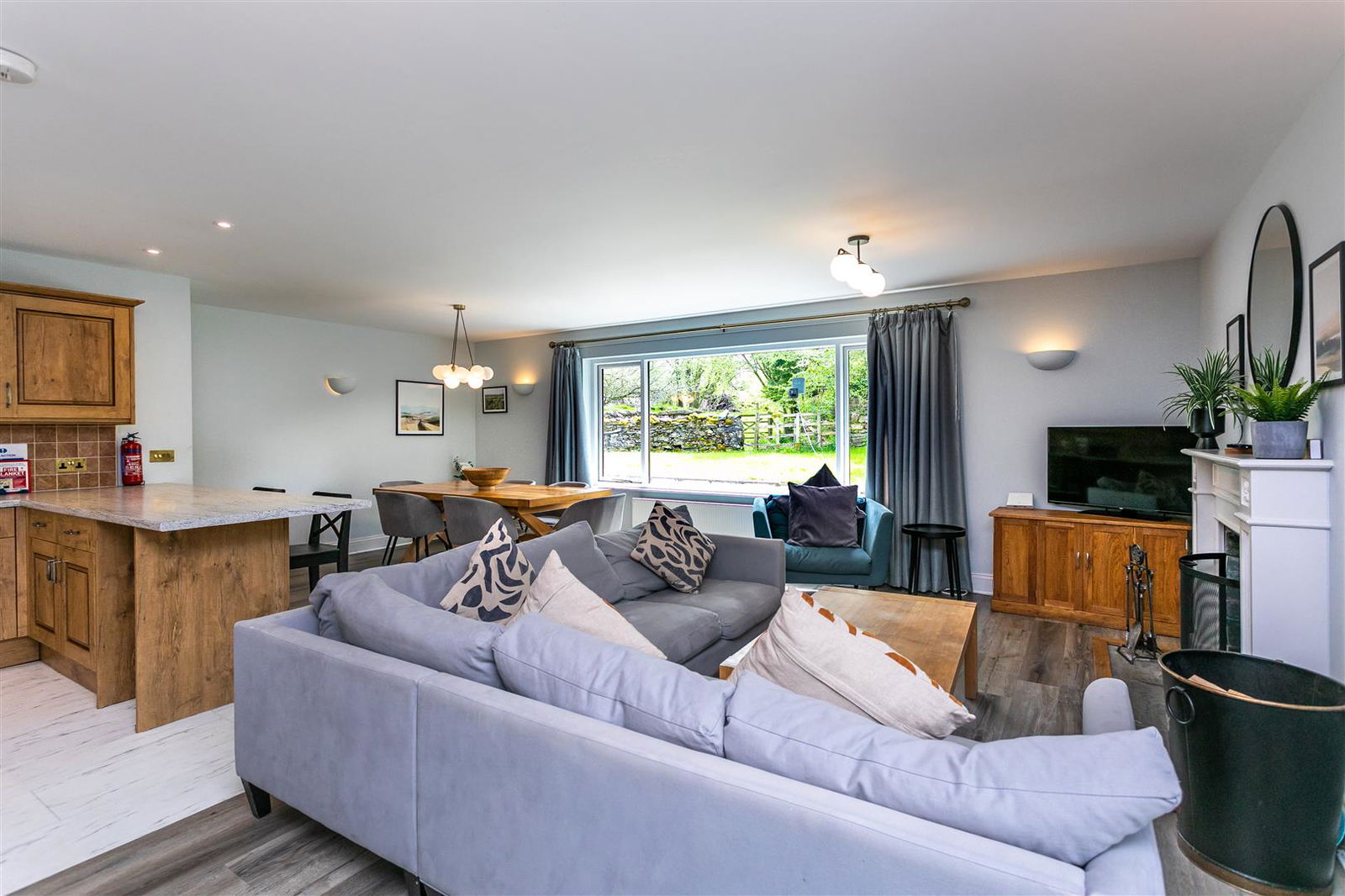 Outside paved areas provide space for garden furniture with views to the main central tarn and beyond, limestone chippings are laid in the parking areas and the whole property is encircled by informal lawns with shrubs, trees and natural rocky outcrops.