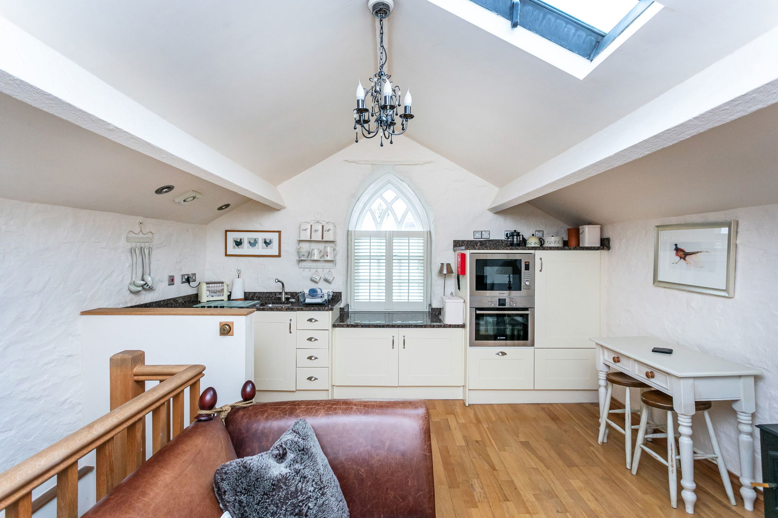 Positioned across the courtyard from Beechmount, ivy clad Coach House is utterly charming and perfect for a romantic getaway. The wide boarded front door opens into the bedroom off which is a small, sweet and perfectly formed shower room. A staircase with oak bannister rail leads to the open plan living kitchen on the first floor; with a ceiling rising to the apex and wooden floor, there are fitted cream panel fronted units, granite worktops and integral appliances. Comments in the visitor’s book sums it up beautifully, describing it as a “magical little cottage”, “cosy, quaint and comfy” and, quite rightly, “unique”.