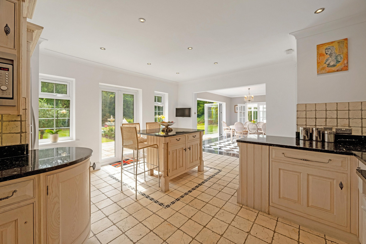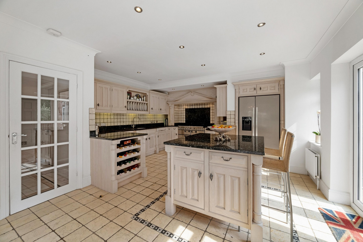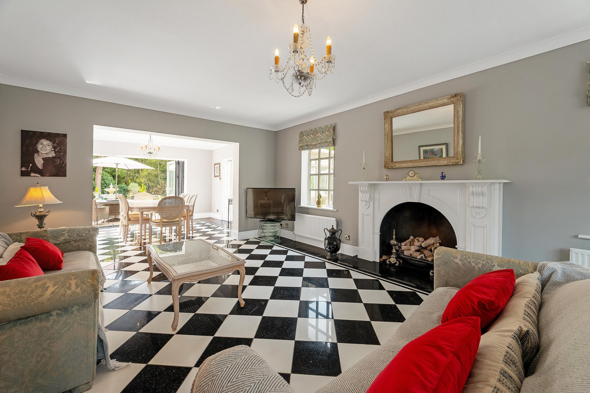 The property boasts six generous double bedrooms and five luxurious bathrooms, including separate his-and-hers en-suites in the principal bedroom. Three elegant reception rooms and a light-filled conservatory provide versatile living and entertaining spaces.