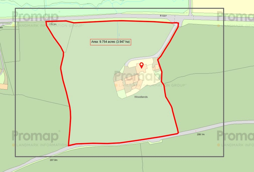 Woodlands sits in a total plot of around 9.28 acres. This is mainly made up of a large field with its own road access that wraps around the front, side and rear of the property. A footpath runs across the southerly boundary diagonally across into a neighbouring field on the east side. We are advised by the owners that it is rarely used.