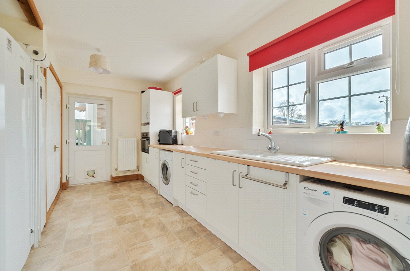 The beautifully fitted kitchen by Foremost Kitchens in 2021 offers a range of integrated Bosch appliances with induction hob, ovens, dishwasher and fridge – windows to the front command views over the front field and gardens.