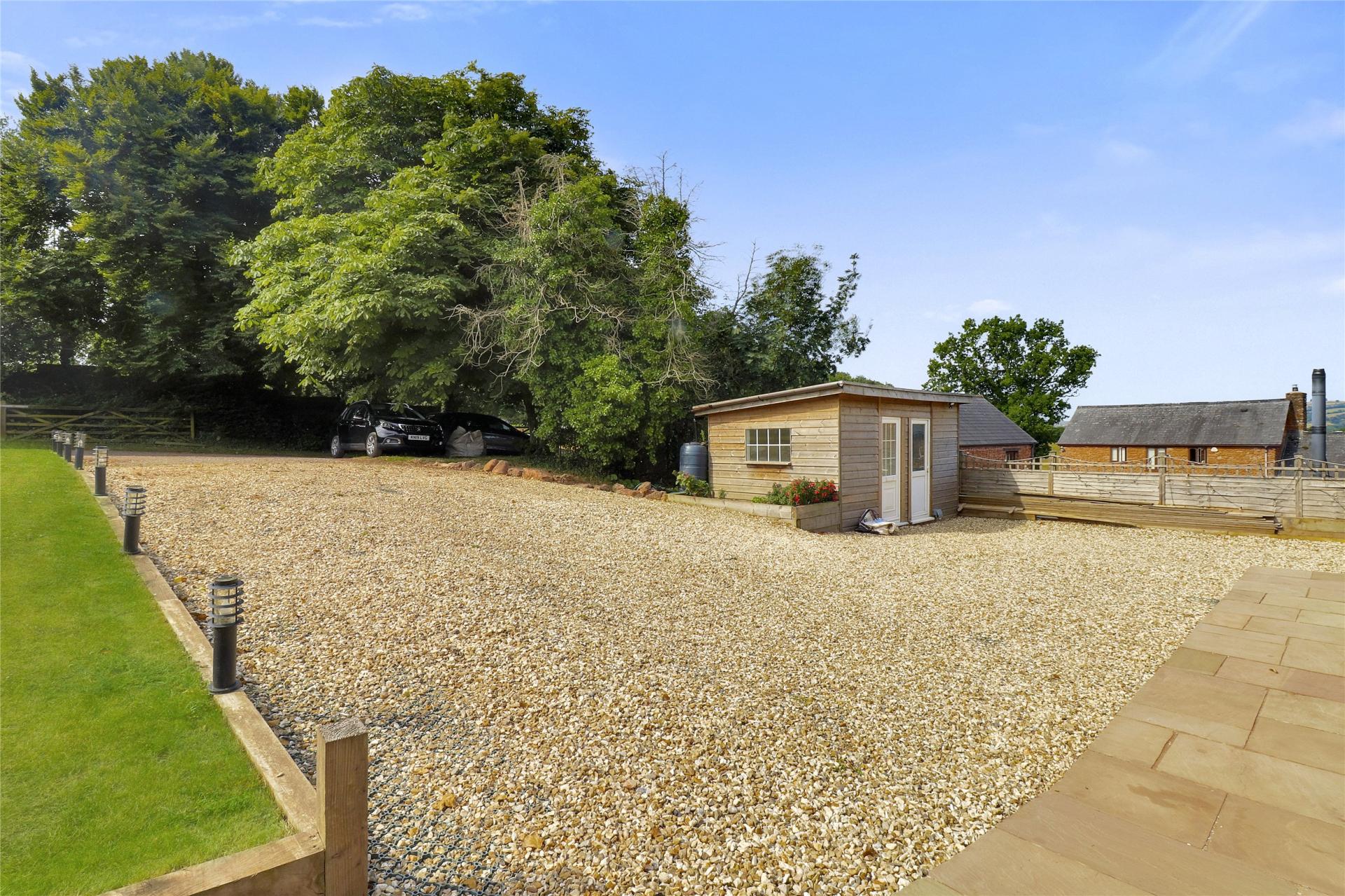 There is parking on a gravelled drive for numerous cars and at the front, there is a timber outbuilding, half of which is adapted as a home office, the rear part for storage.