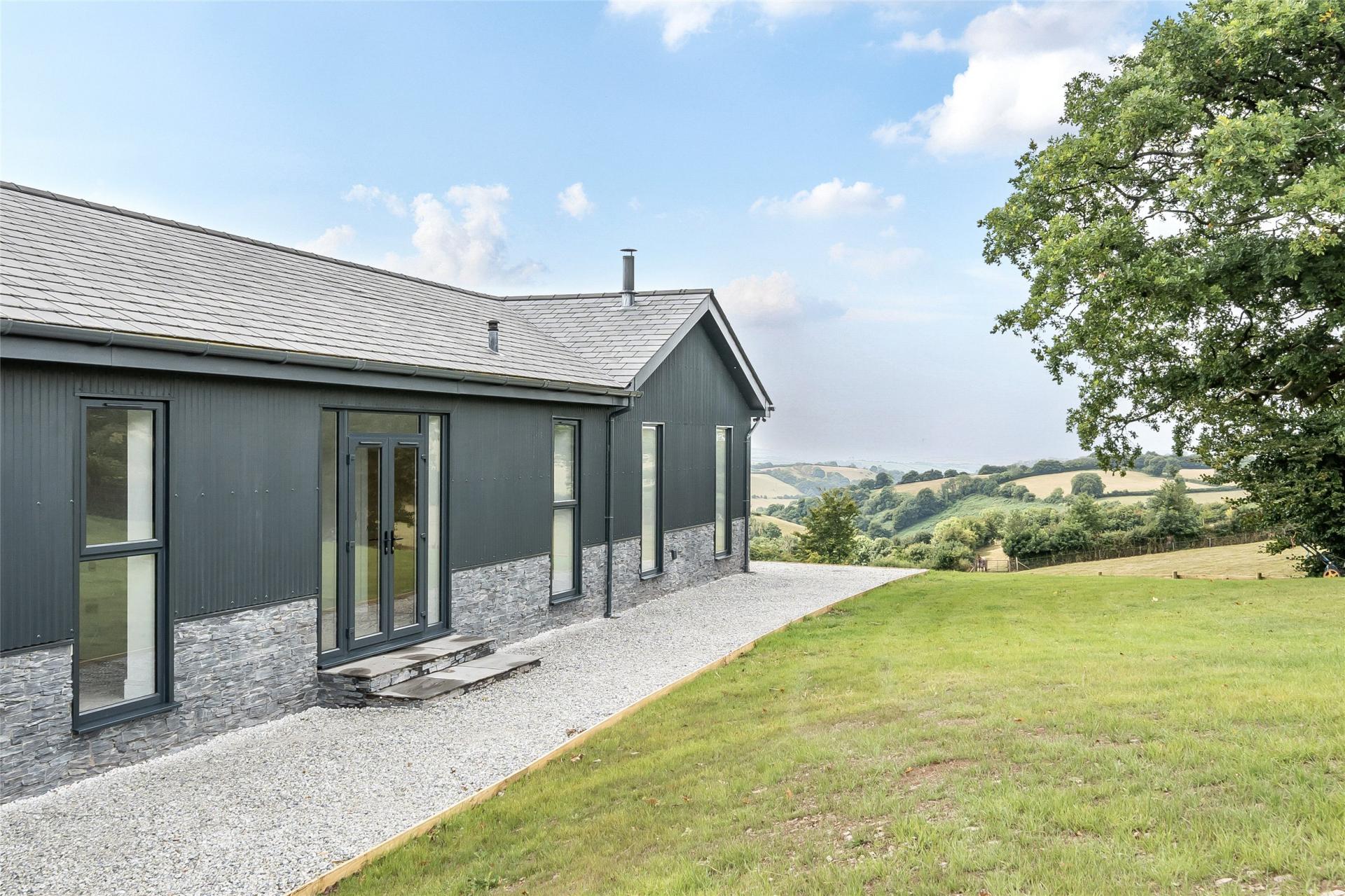 Brand new detached rural dwelling in its own 5.7 acres with stunning, panoramic views to Exmoor - 3536 square feet. 60 foot high spec kitchen/dining/living room with log burner, under floor heating throughout, luxury family bathroom, three further ensuites, utility and WC. FIBRE BROADBAND AND EV CHARGING POINT. Extensive parking and gated drive. EPC Rating C