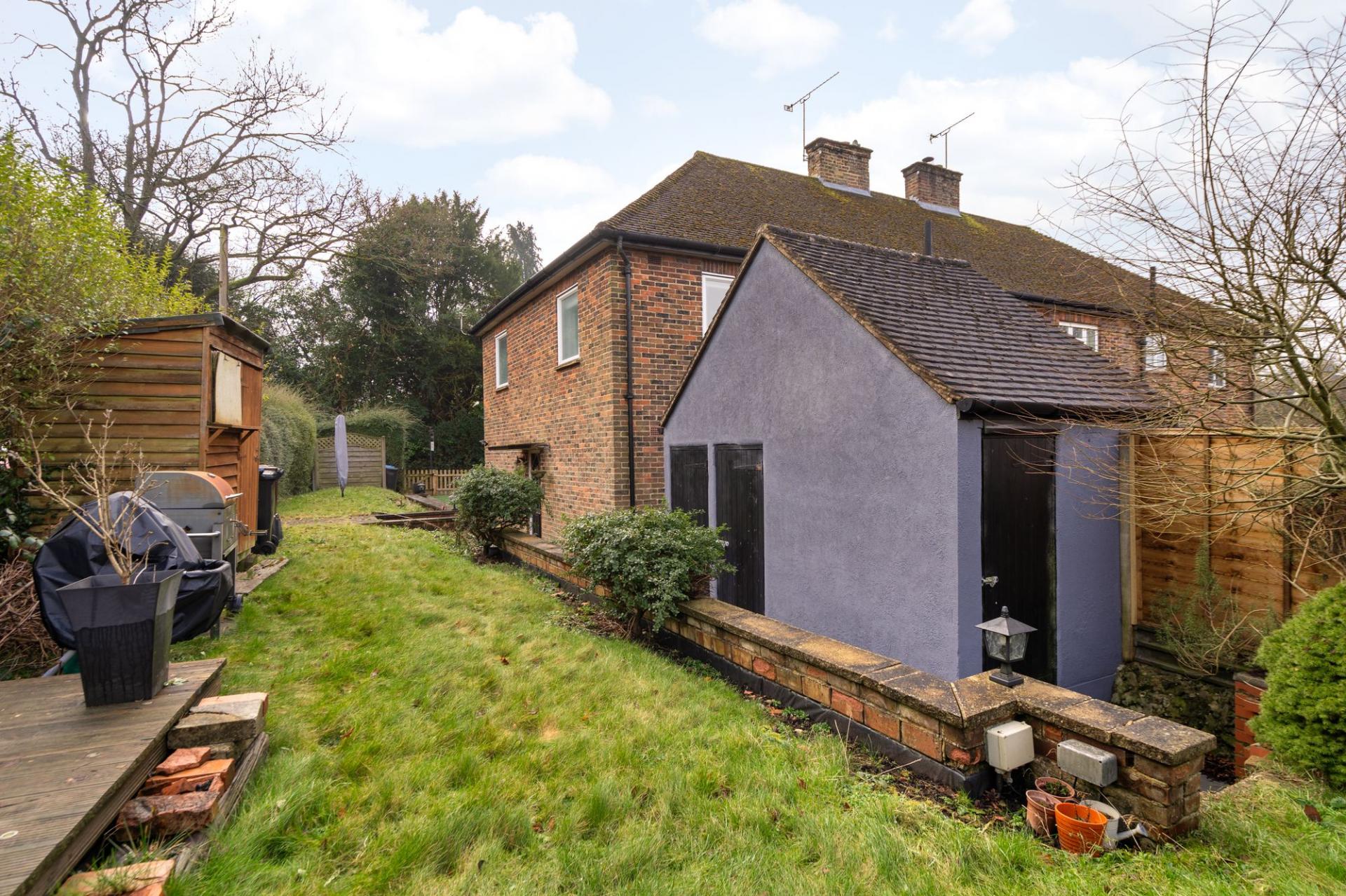 Complementing the indoor living spaces, the property features useful outbuildings that offer additional storage options and potential for various purposes, enhancing the practicality and versatility of the home.