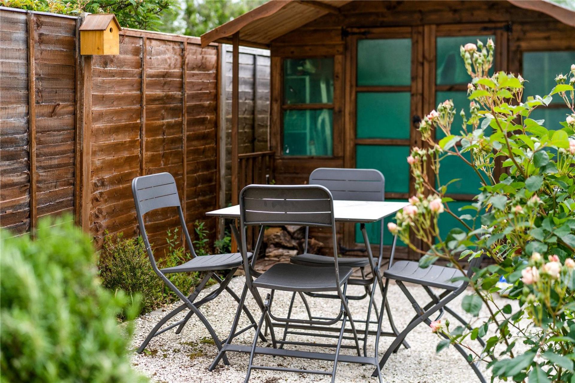The West facing rear garden, is completely secluded by mature hedging and fencing with a level lawn and patio area, and private access to ‘The Glebe’.