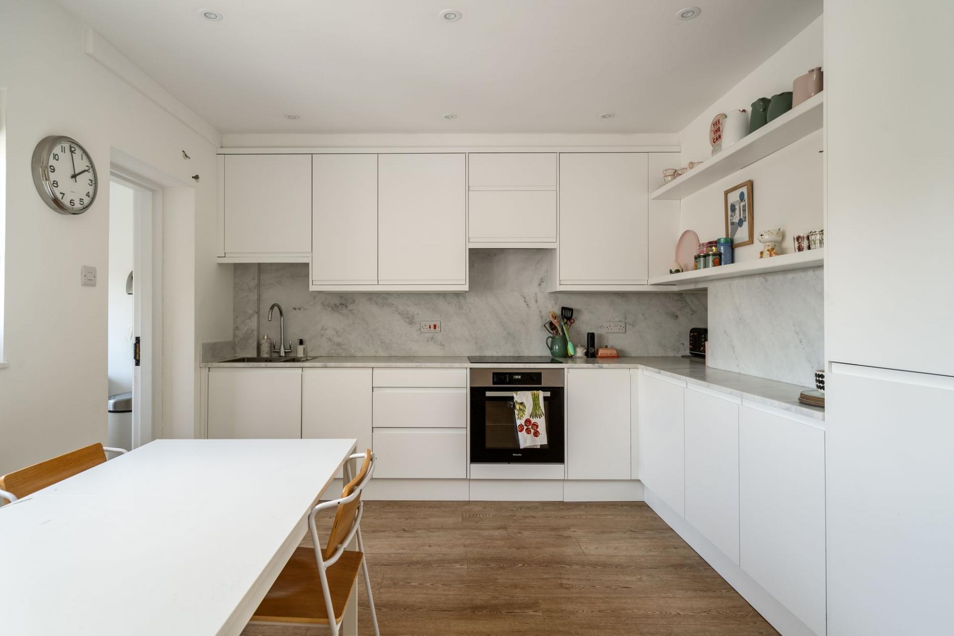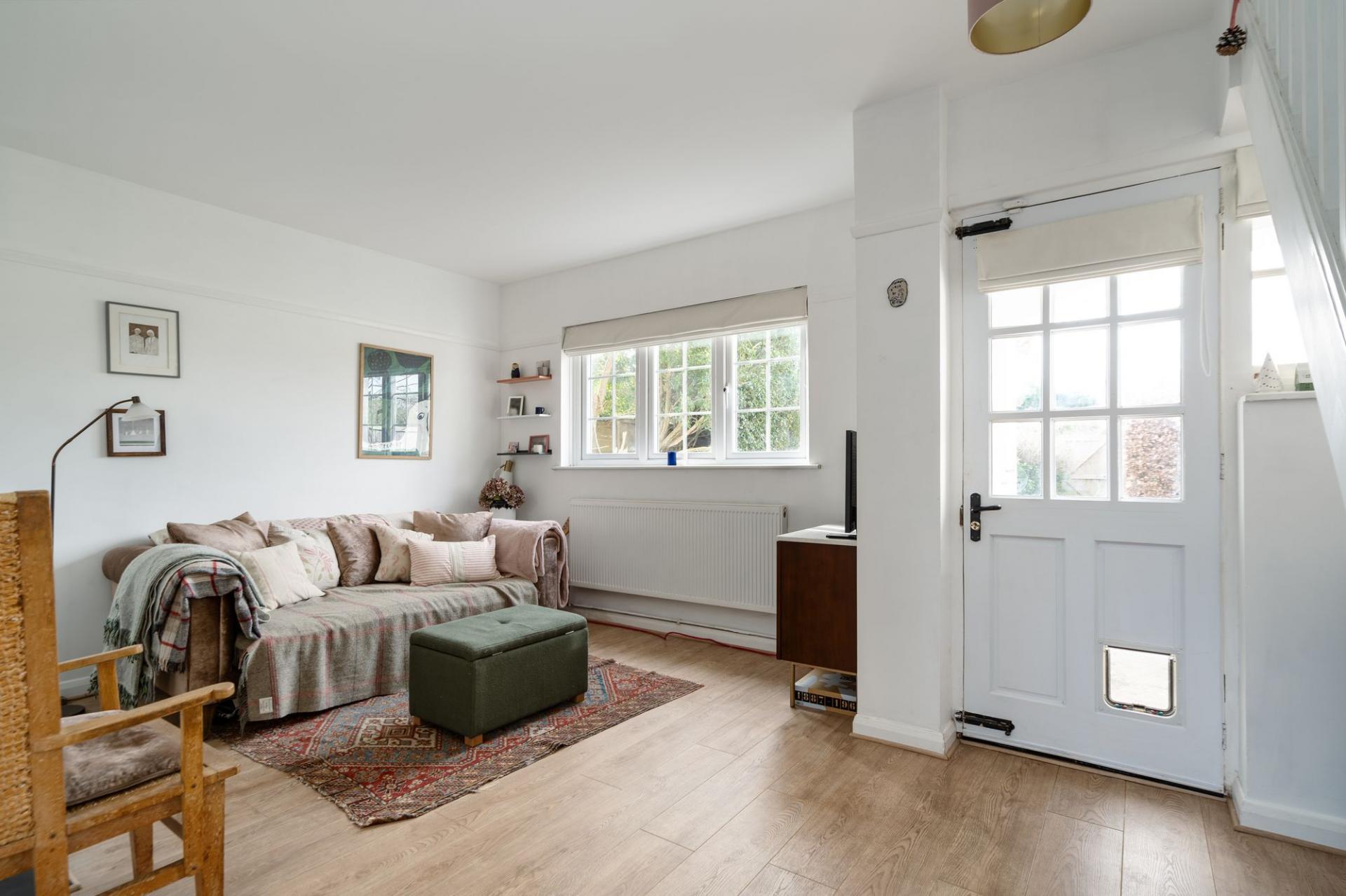 Upon entering, one is immediately struck by the tasteful updates and thoughtful touches that epitomise the recent refurbishment. The attention to detail is apparent throughout, from the wood burning stove that creates a cosy atmosphere to the well-appointed features that enhance the overall appeal of the home. The property is set behind a large front garden, offering two off road parking spaces, as well as a pretty lawned area with patio and summer house, catching the morning sun. A glazed entrance porch leads into an open plan, recently refitted kitchen/breakfast room, benefiting from views of the front garden. There is also a walk in larder to this room, as well as a separate cloakroom/utility room.