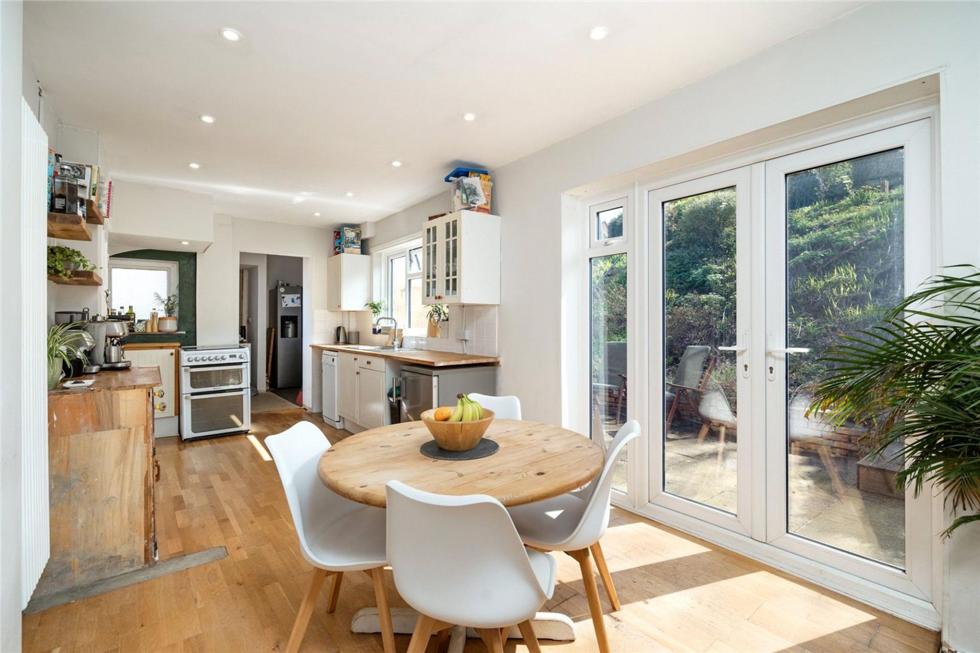 With a door from the hall and lounge to the good size kitchen/dining room, there is a range of kitchen units with incorporating a sink unit, space and plumbing for dishwasher, space for fridge, and fitted oven. The dining area has double glazed french doors to the sunny rear garden. There is an archway to a handy utility room with a door to the front garden and plumbing and space for a washing machine, American style fridge/freezer, plus a wall mounted gas central heating combination boiler. The owners had started to fit an adjacent shower room off where there is already plumbing for a shower (shower tray fitted) and plumbing for a WC and sink. Extractor fan and downlighters. The utility room/shower room also has provision for underfloor heating (workings/limestone tiles supplied if required).