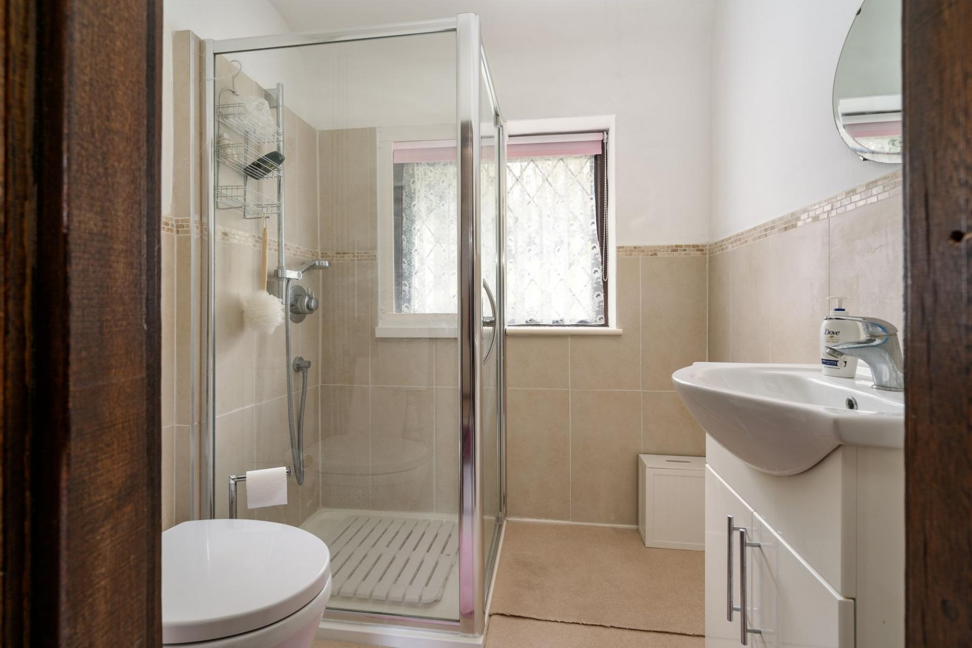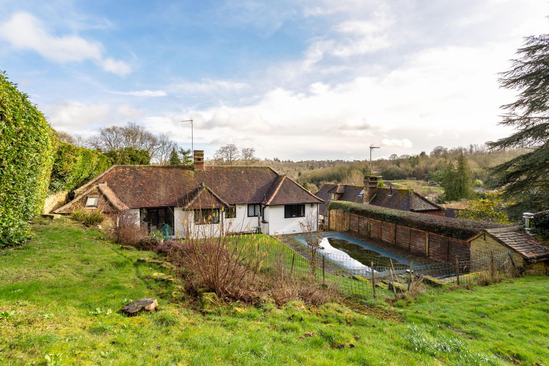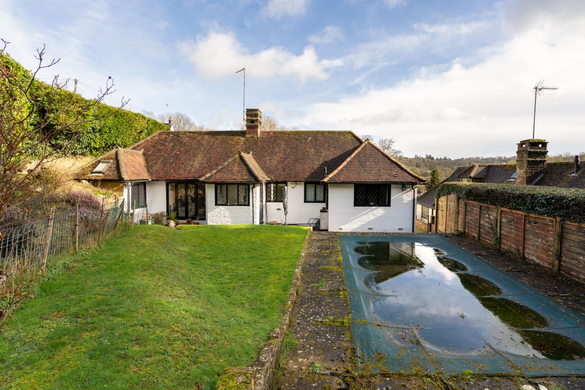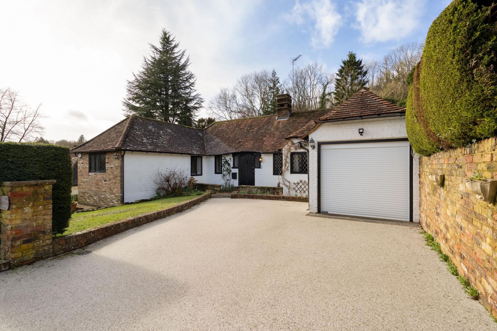 Built circa 1930’s, situated within a quiet, tucked away location, but within easy reach of Caterham Village and main line railway station, this ¾ bedroom, 2 reception room, 2 bath/shower room is offered for sale with no onward chain. Positioned within a select cul-de-sac, Little Quarries is a well presented, detached bungalow, offering accommodation over one level approaching 1177 square feet. The characterful property is approached via a decent size entrance hall with original oak front door and windows overlooking the front garden. A particular feature of the property is the spacious lounge, being double aspect with French doors leading to the rear garden and a beautiful inglenook fireplace taking centre stage with exposed brickwork and slate hearth, creating a warm and welcoming ambience. Relax by the crackling fire in the open grate as you unwind after a long day, appreciating the tranquillity this space provides. The room features a high beamed ceiling and beams to walls. An open arch leads to the dining room, with a vaulted ceiling and a window overlooking the rear terrace. This room could be utilised as a 4th bedroom as there is a handy lobby off leading to a bathroom. The fitted kitchen has a range of cream fronted kitchen units with laminate worktops and space for various appliances as well as a Zanussi electric double oven with pull out extractor unit over. THe adjoining utility room has space and plumbing for a washing machine and tumble dryer and a door to the rear garden.