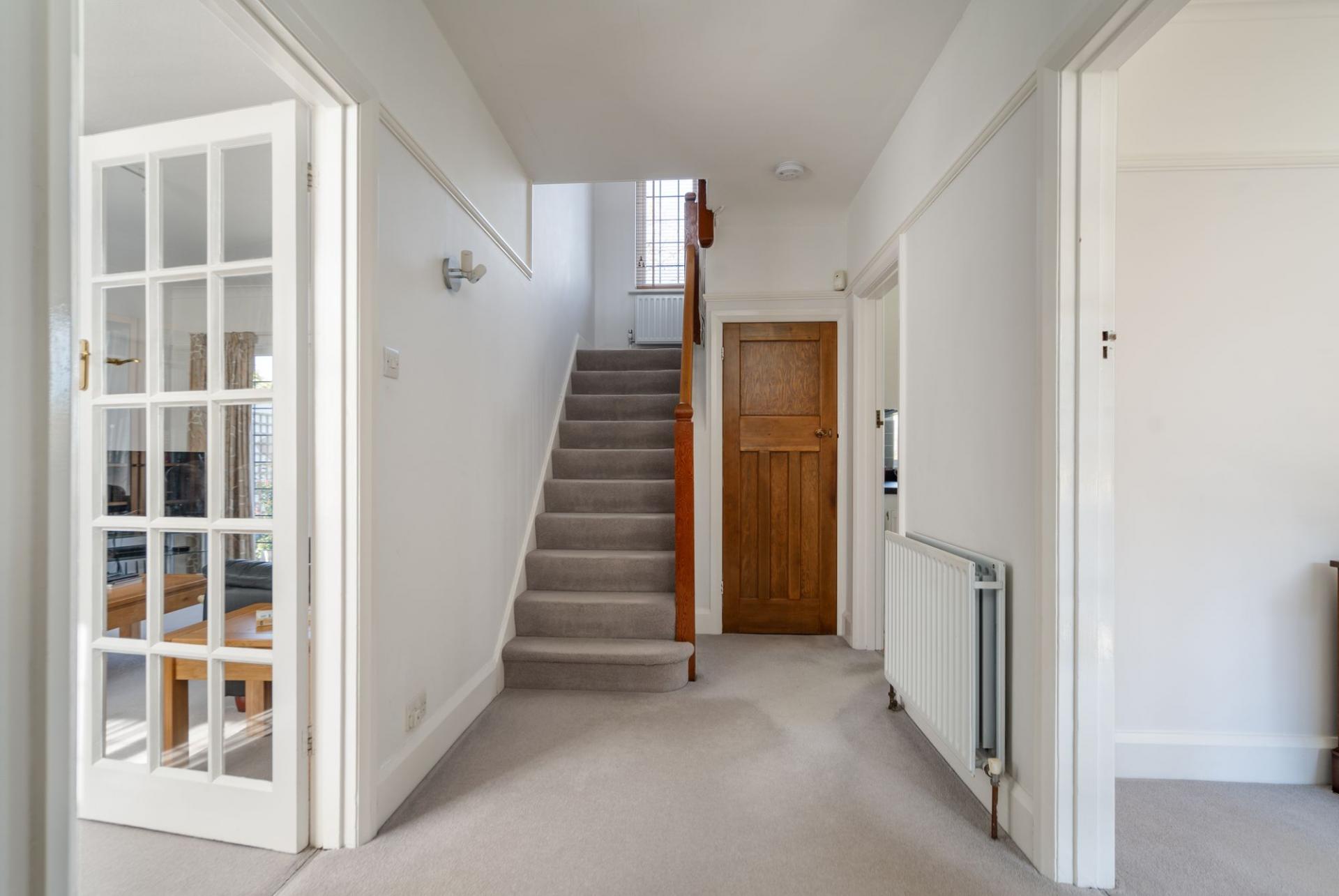 The accommodation comprises generously proportioned rooms that flow effortlessly from one to another. The living room is a welcoming space, ideal for relaxation and entertaining, being double aspect with french doors to the rear garden, while the separate dining room provides the perfect setting for formal gatherings. The kitchen offers ample storage and workspace, with integrated appliances to include double oven, induction hob, integrated fridge/freezer, dishwasher and washing machine.