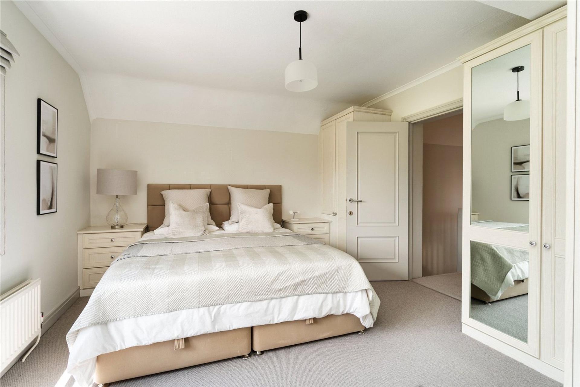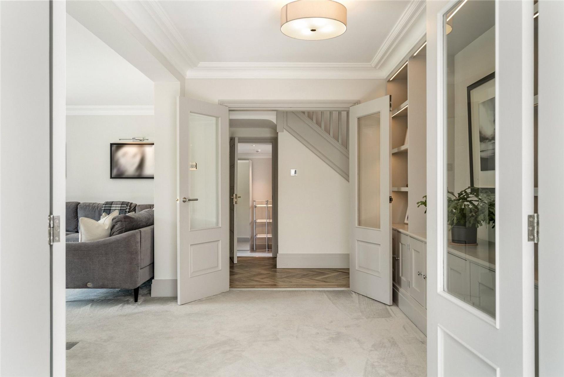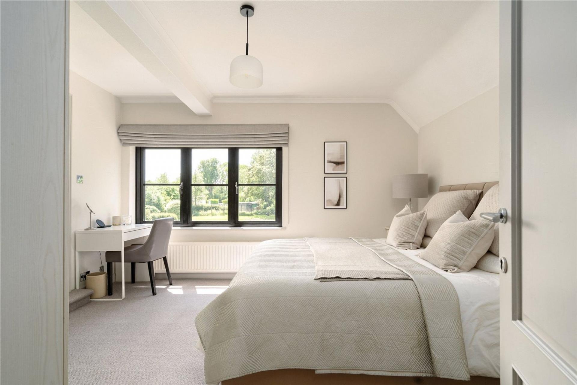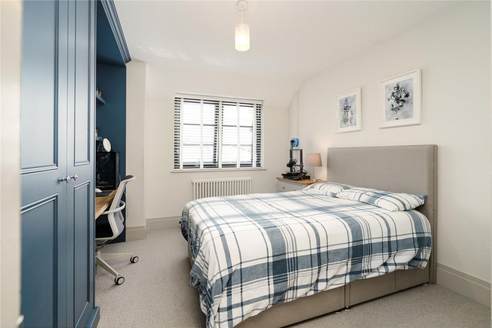 The Living Room features a newly fitted stone fireplace with a new log burner and lined flu, newly fitted carpet, French doors to the garden and a library area bespoke joinery and LED lighting. From the hallway with Amtico and underfloor heating, there is a study benefiting from both front and rear aspects. The useful boot room is accessed from the hall and features built in furniture to include basket drawers, coat hooks and a window/bench seat with storage under. Here you will also find the space and plumbing for the integrated washing machine and tumble dryer.