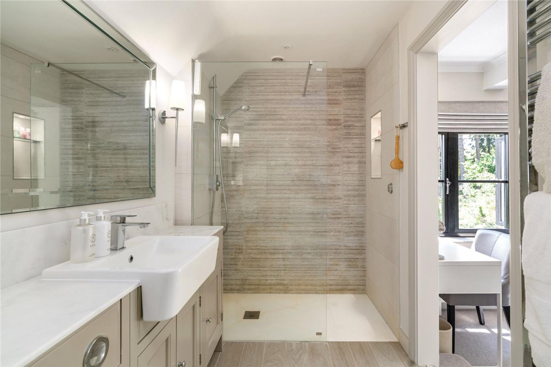 Rising to the first floor, the current owners have similarly extended the first floor to provide four double bedrooms, with the principal bedroom suite offering newly fitted wardrobes and ensuite bathroom with an Aquilisa digital shower with external remote control and Porcelanosa tiles. There are three further double bedrooms, two having fitted wardrobes, all sharing the newly fitted shower room, also with Aqualisa digital shower with external remote control and Porcelanosa tiles. From the landing, there is boarded loft with new insulation. New CCTV system, new alarm system and hard wired smoke and heat sensors. Newly fitted carpets throughout.