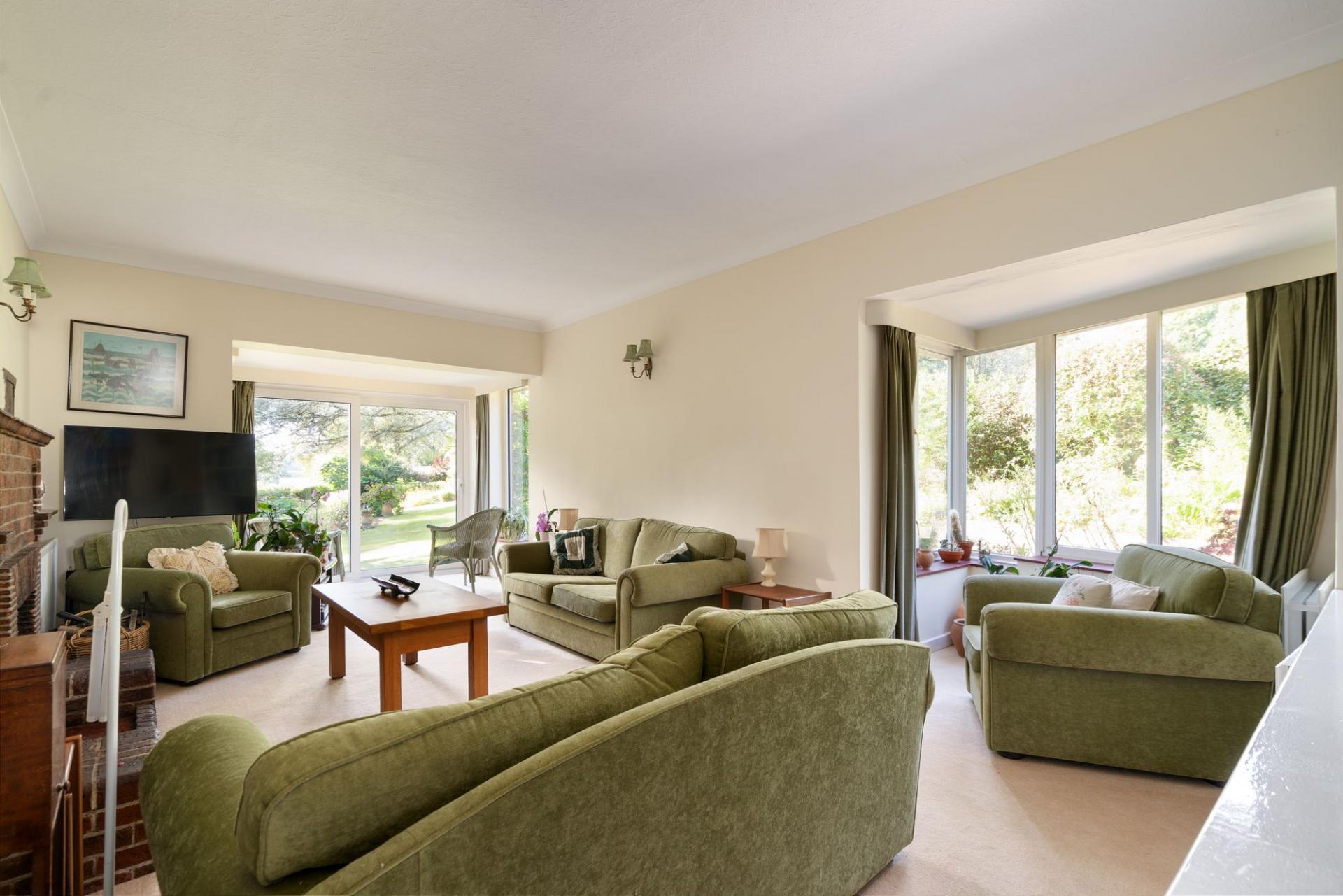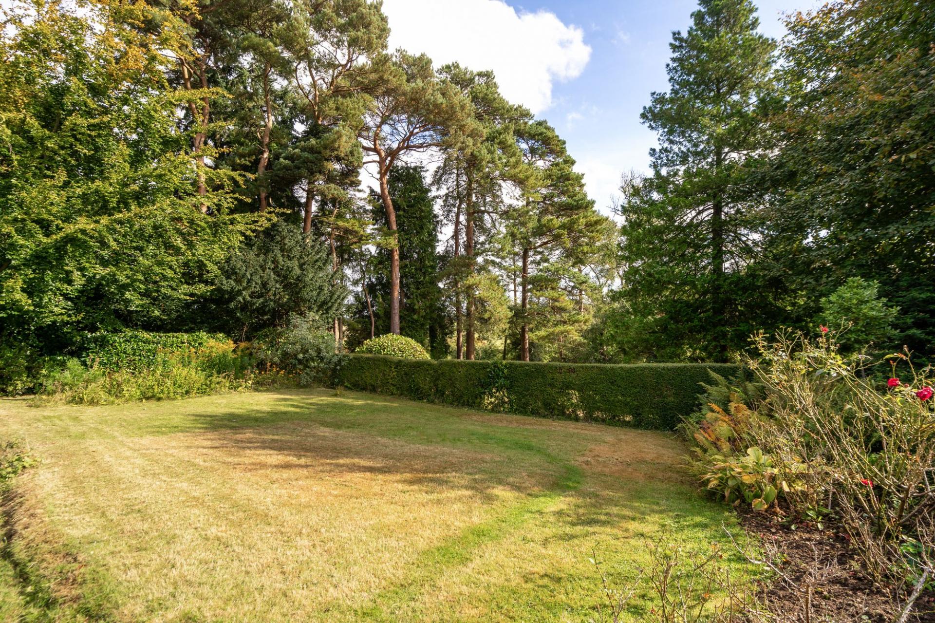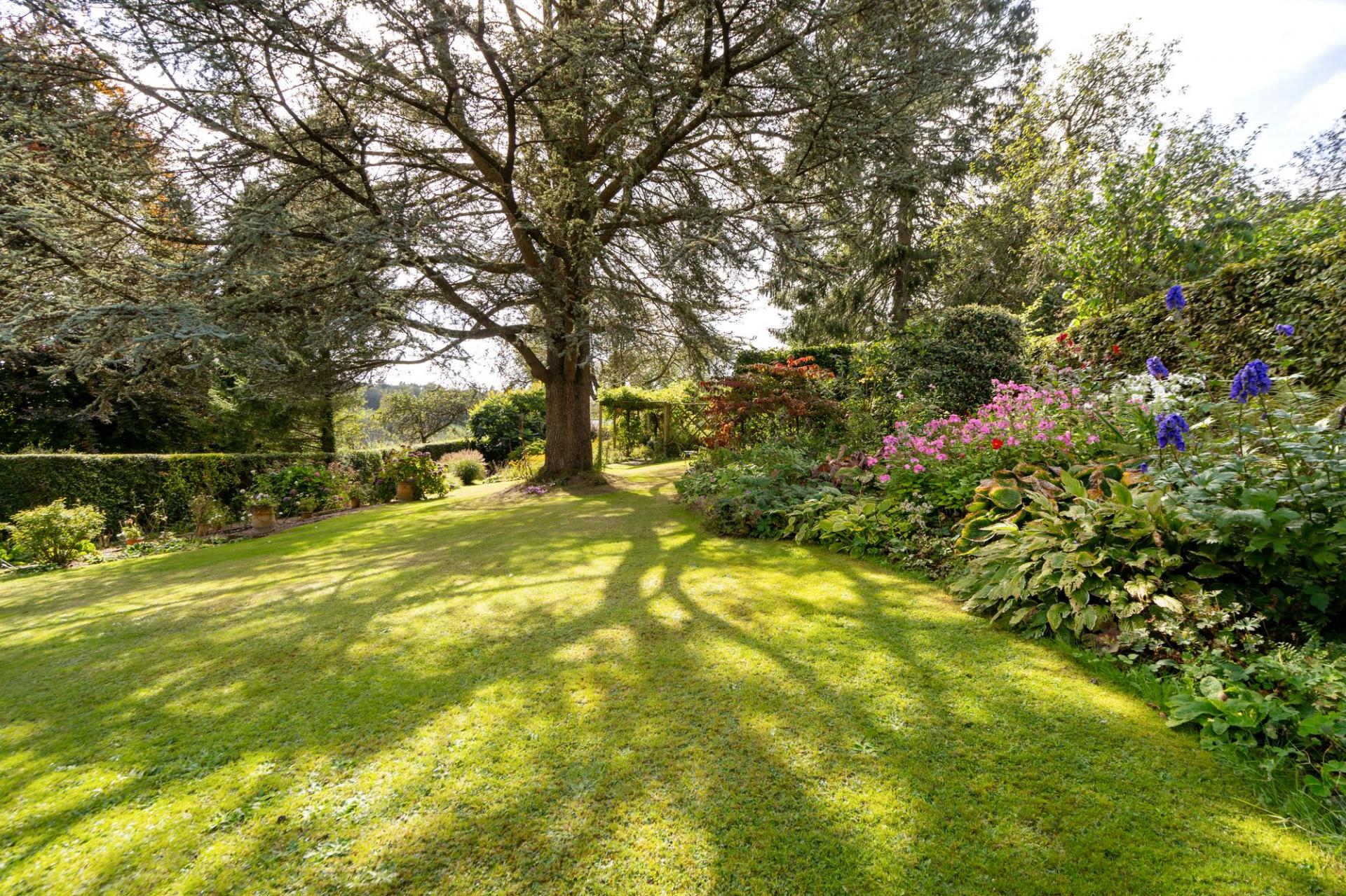 Stepping outside to explore the beautifully landscaped grounds extending to a half acre plot, the south facing rear garden offers complete seclusion, with extensive lawns, bordered by mature trees and shrubs, apple and pear trees, wildlife pond with water feature, greenhouse, rose garden, and a pretty central arbor walkway. To the front, the property features a single detached garage for convenient parking and additional storage, further elevating the functionality of the home.