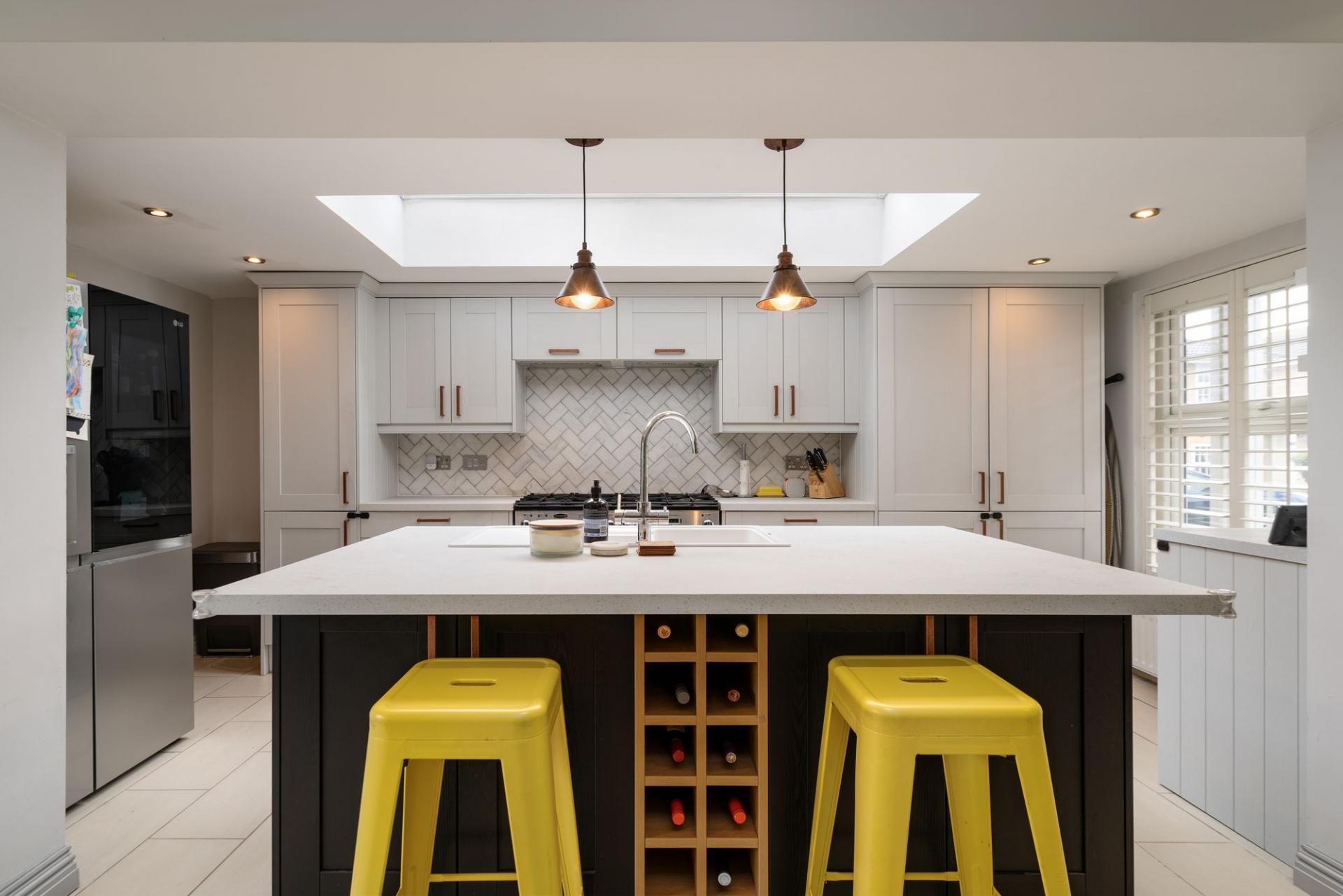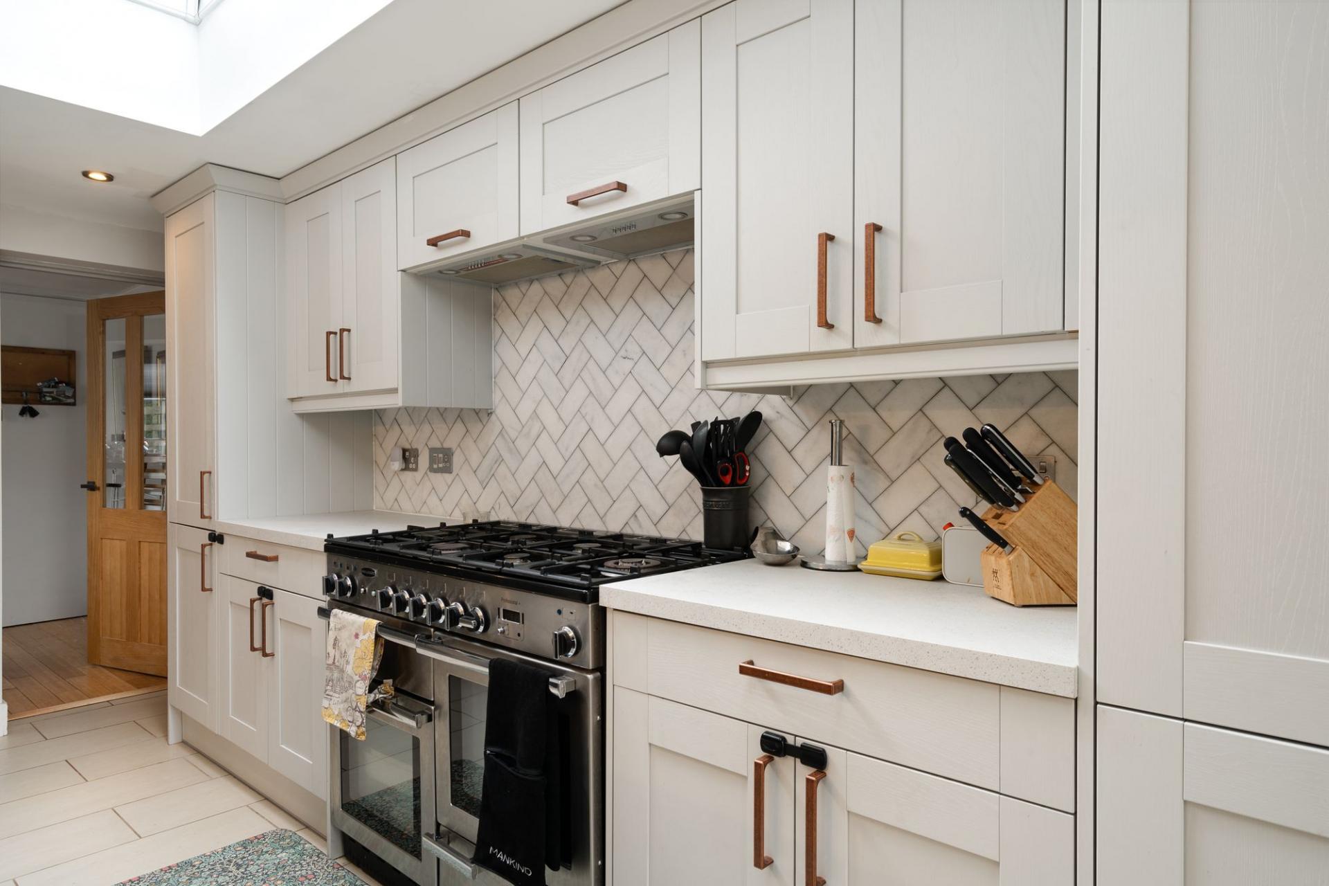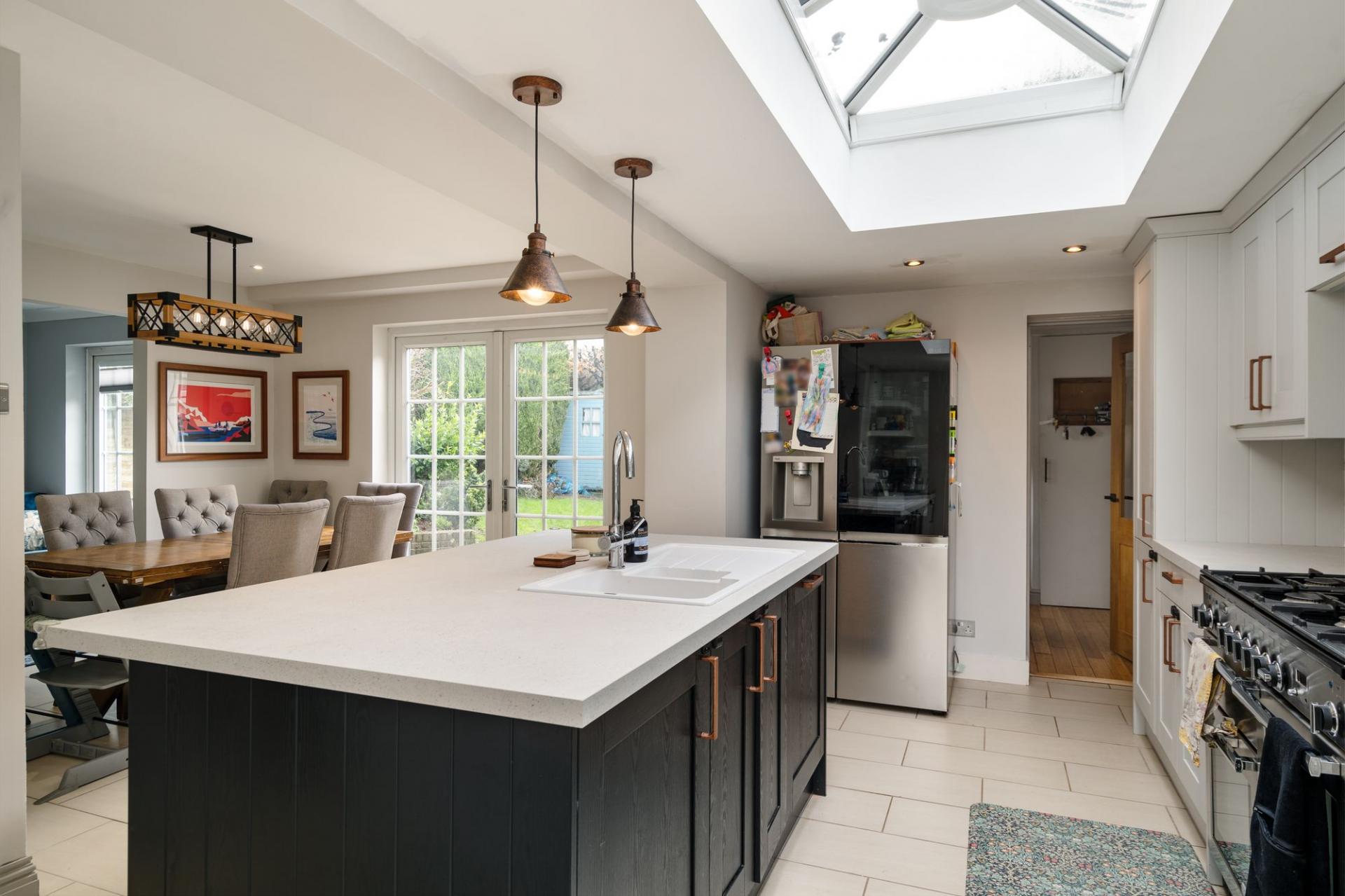 Upon entering, you are greeted by a newly renovated Wren kitchen that exudes sophistication and functionality. The heart of the home, this culinary haven is equipped with modern appliances and ample countertops, making it perfect for both intimate gatherings and grand entertaining. The ground floor extension, featuring a large lantern light, floods the space with natural light, creating a warm and inviting ambience.