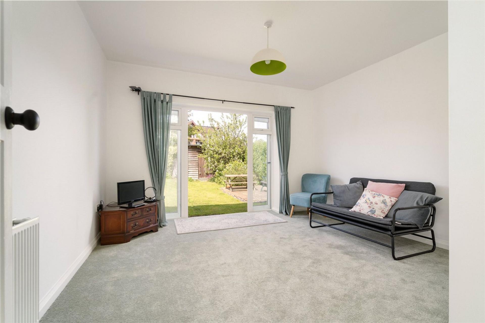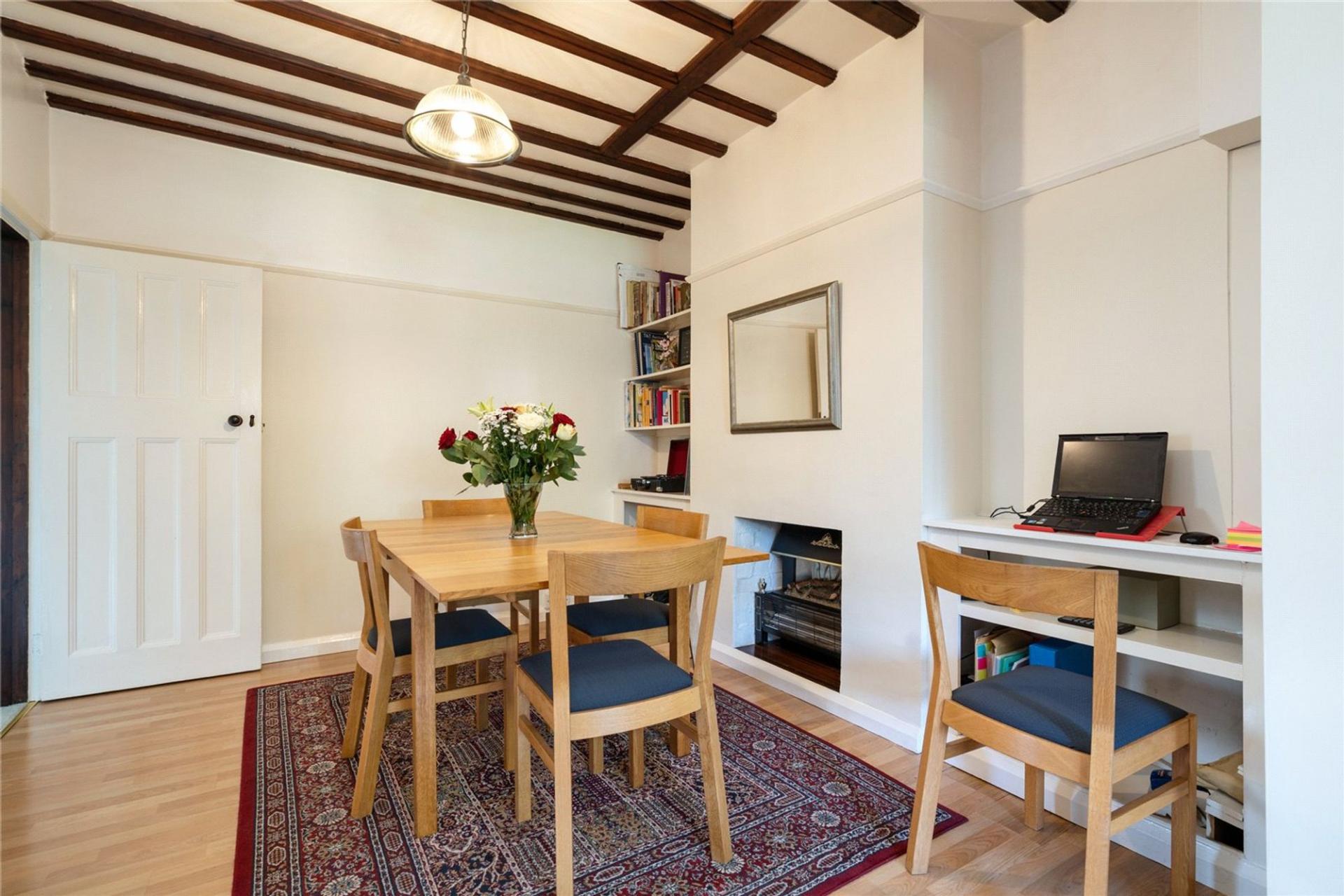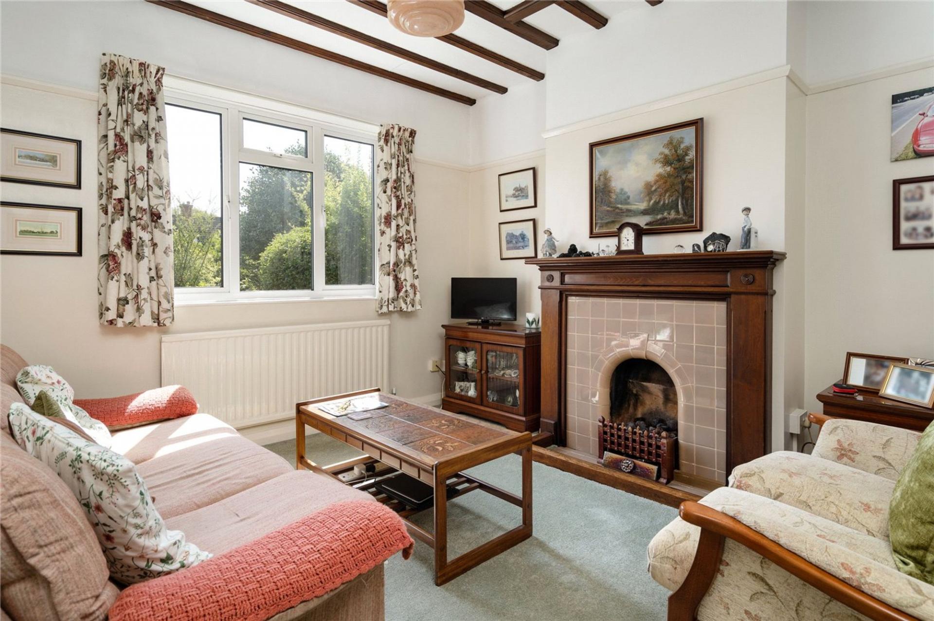 Homeleigh is approached via a long front garden, being set well back from the road and providing 2/3 off road parking spaces. The pretty front garden is well stocked with flower beds and shrubs with a pathway leading to the front door. The Lounge overlooks the front garden and has beams to the ceiling and an original fireplace surround with gas fire. The dining room has fitted shelving to each side of the fireplace, fitted with an electric fire but with the chimney still in place if an open fire is required. The kitchen is open plan to the dining room and is fitted with a range of white fronted kitchen units incorporating oven, hob, dishwasher and space for fridge/freezer. A door from the kitchen leads to a Utility Room with plumbing for washing machine and tumble dryer and with a useful downstairs cloakroom off and a door to the downstairs bedroom or family room which has doors to the rear garden. (This room is separated from the Kitchen by a stud wall, so could easily be opened up to create a larger kitchen/family room).