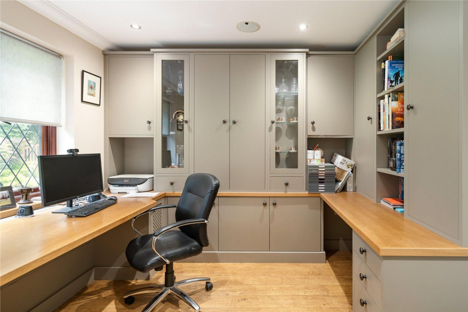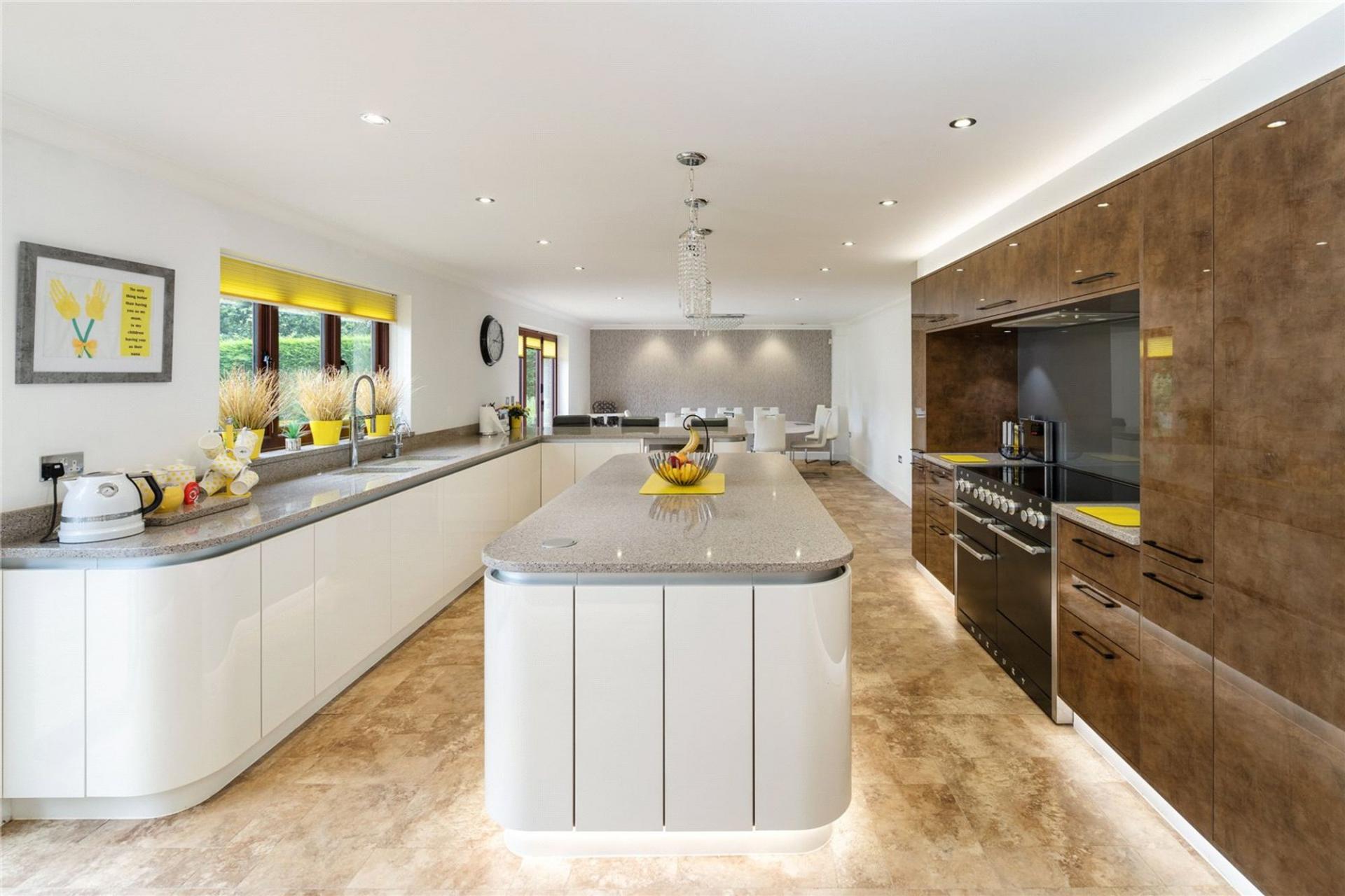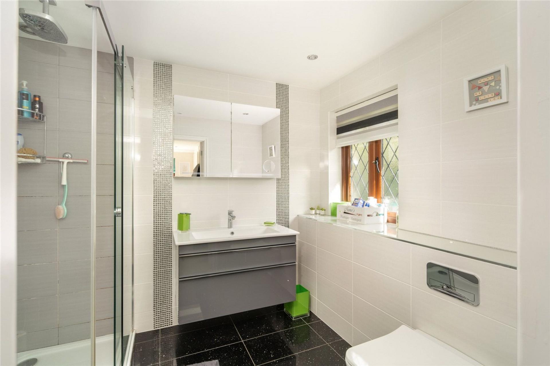 A beautifully presented, five double bedroom, three bath/shower room, three/four reception room, detached family home, built 2004 and situated within the sought-after village of Woldingham, adjoining the highly regarded Woldingham Golf Course. Offered to the market in excellent condition throughout, boasting a magnificent Kitchen/Dining/Family Room running the full width of the property overlooking the delightful level grounds of an Acre. Approached via double, wooden remote-operated security gates, leading to a resin-bond extensive driveway provides ample off-road parking and turning area for numerous cars. The property has been traditionally constructed of brick relieved by tile hung elevations and leaded light windows. Offering just over 3,000 ft² of living accommodation over two floors; all the rooms are independent and arranged off a central Reception Hall and Landing with windows affording green views over generous, lawned grounds. A particular note of this property is the comprehensively fitted, Mereway kitchen: an abundance of gloss-fronted, white and contrasting brown units with galaxy composite stone worktops incorporating a large central island unit. Integrated appliances include a Mercury range cooker with induction top, wine fridge, dishwasher, double full-height larder fridge-freezer, double full-height larder cupboard and a double cupboard concealing everyday appliances with power and light. There are two sets of bi-folding doors leaving both the Kitchen area and the Dining area, giving access to the extensive flagstone patio to the rear, as well as halogen down-lighters, under-counter lighting and base counter lighting, all with underfloor heating beneath Karndean tiles. We believe a shrewd addition to this room would be the inclusion of an Orangery off of the Dining area (STPP.) A Utility Room with another full range of matching cupboards, plumbing for washing machine and tumble dryer, Worcester gas central heating boiler and a door to the rear garden, also with underfloor heating. The formal Lounge is a double aspect room with a focal point gas log-effect fireplace, fitted media unit to one wall and matching fitted benching/storage units recessed into the bay overlooking the front garden. A second Sitting Room, also double aspect, serviced by another gas log-effect fire, is currently used as a TV Room/Snug and to complete the ground floor, a modern, fully tiled Cloakroom and a large Study, fully fitted with bespoke office furniture incorporating storage and desk unit. FIRST FLOOR... Rising to the first floor, all bedrooms lead off the half Galleried Landing, with the Master Bedroom having a range of fitted wardrobe cupboards, Walk-In Wardrobe, En Suite with large Walk-In Shower, Vanity Sink unit, W/C, heated towel rail, tiled walls and flooring. Bedroom Suite Two also offers a double wardrobe cupboard, views to the rear garden and an En Suite Shower Room with large shower cubicle, W/C, wash-hand basin, heated towel rail, tiled walls and flooring. Bedrooms Three, Four and Five are all double rooms, fitted with wardrobes which share the Family Bathroom. A Walk-In shower, panelled bath, sink unit, W/C, tiled walls and flooring with underfloor heating. STEP OUTSIDE... A particular feature of the property, offering an approximate total of an Acre: a flagstone patio is approached via the Kitchen/Family/Dining Room with extensive level lawns abutting. Summer House with power and lighting, currently used as a Music Studio. A large area of woodland to the rear of the garden. The front garden has a large level lawn bordered to the boundary by mature hedging and offers ample space for off-road parking and turning on a resin-bond driveway. DETACHED BARN STYLE GARAGE - two double doors, power and light.