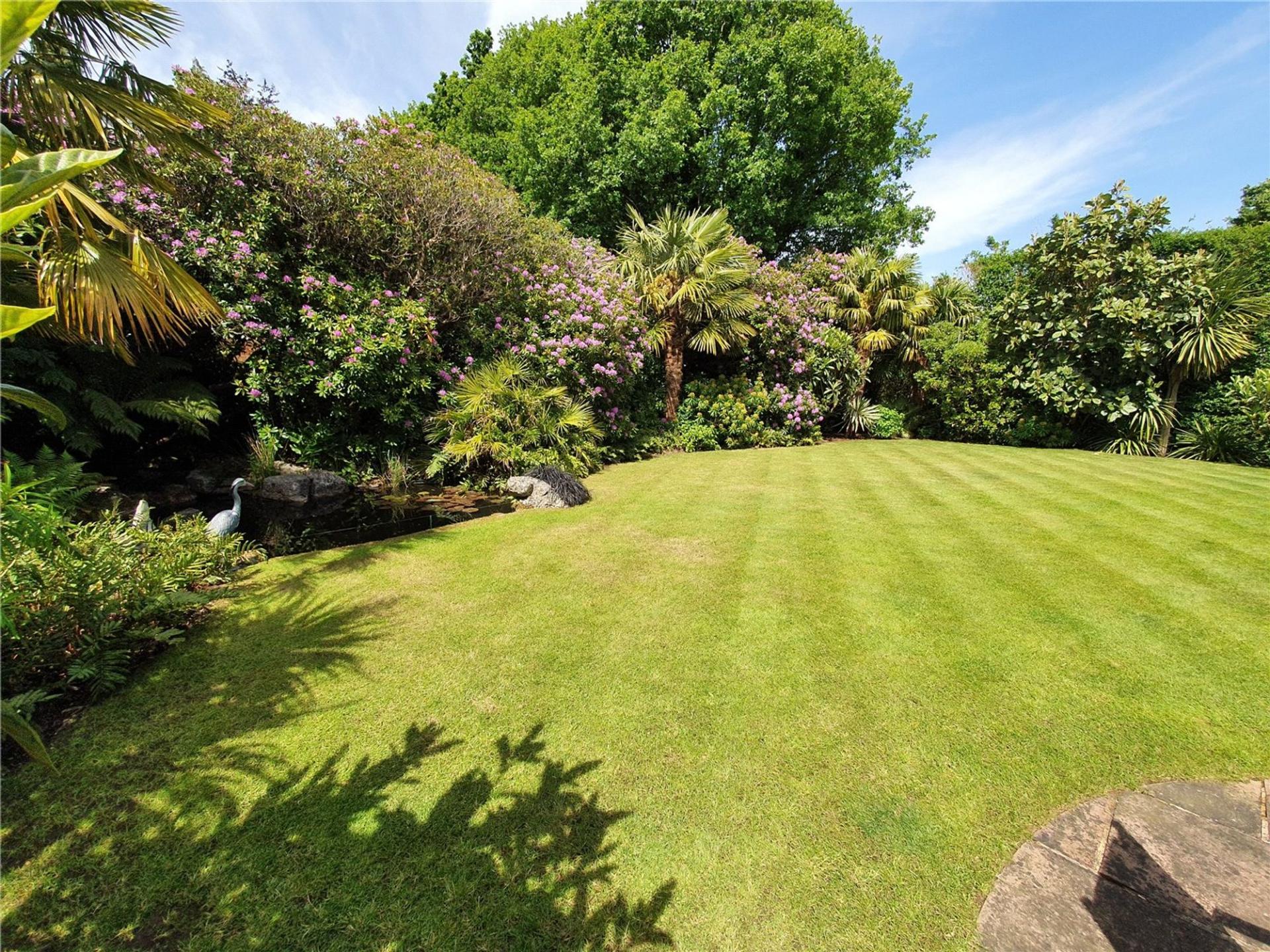 Stepping outside, the meticulously landscaped gardens surround the home, offering a picturesque backdrop for outdoor activities and relaxation. The garden has been designed with a tropical theme, featuring exotic shrubs, mature palm trees and an abundance of specimen trees, all adding to the seclusion of this peaceful garden.