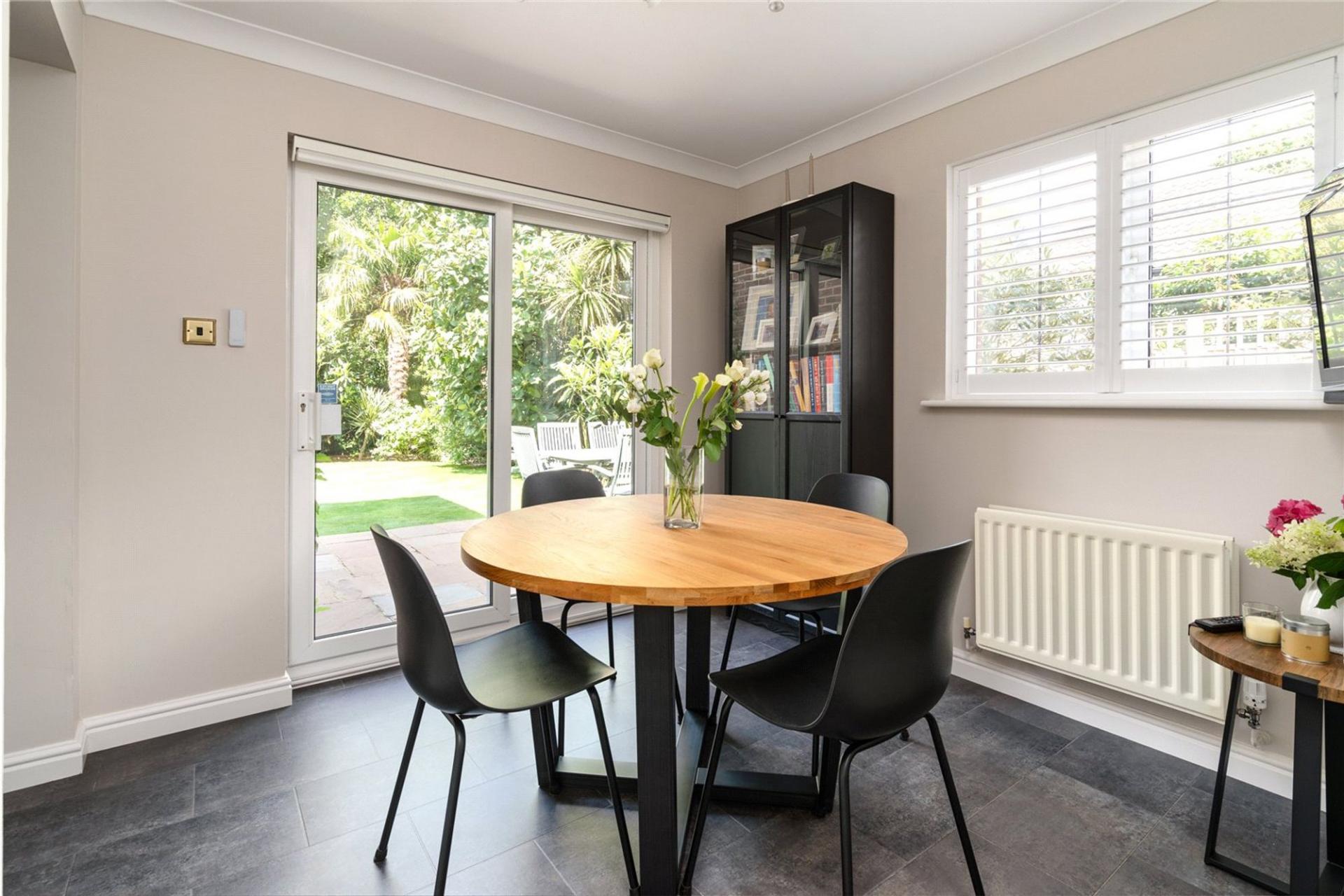 The refurbished kitchen features granite work surfaces, top of the range Bosch appliances, thoughtfully designed modern splashback tiling and Amtico flooring. If you require a more open plan living, the kitchen and dining room could easily be made into one large family space. With open access to the breakfast room, this double aspect room has been designed to offer delightful views of the exterior landscape, with sliding doors to the rear terrace, capturing the morning sun.
