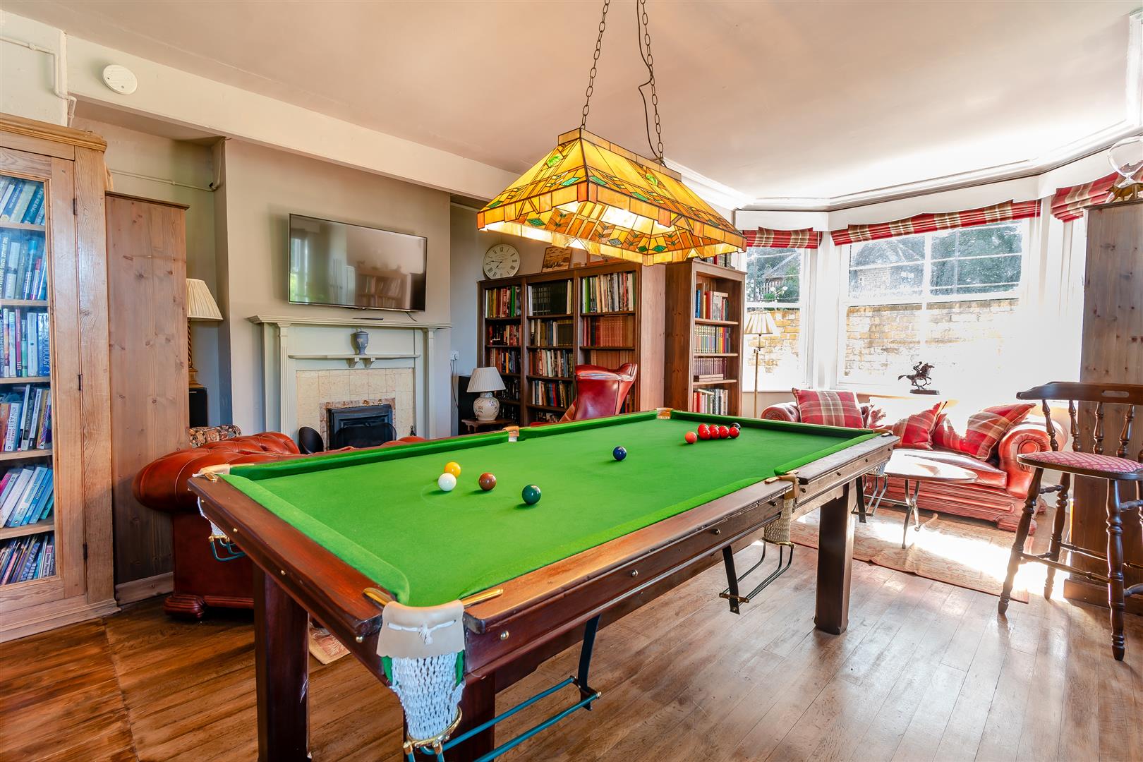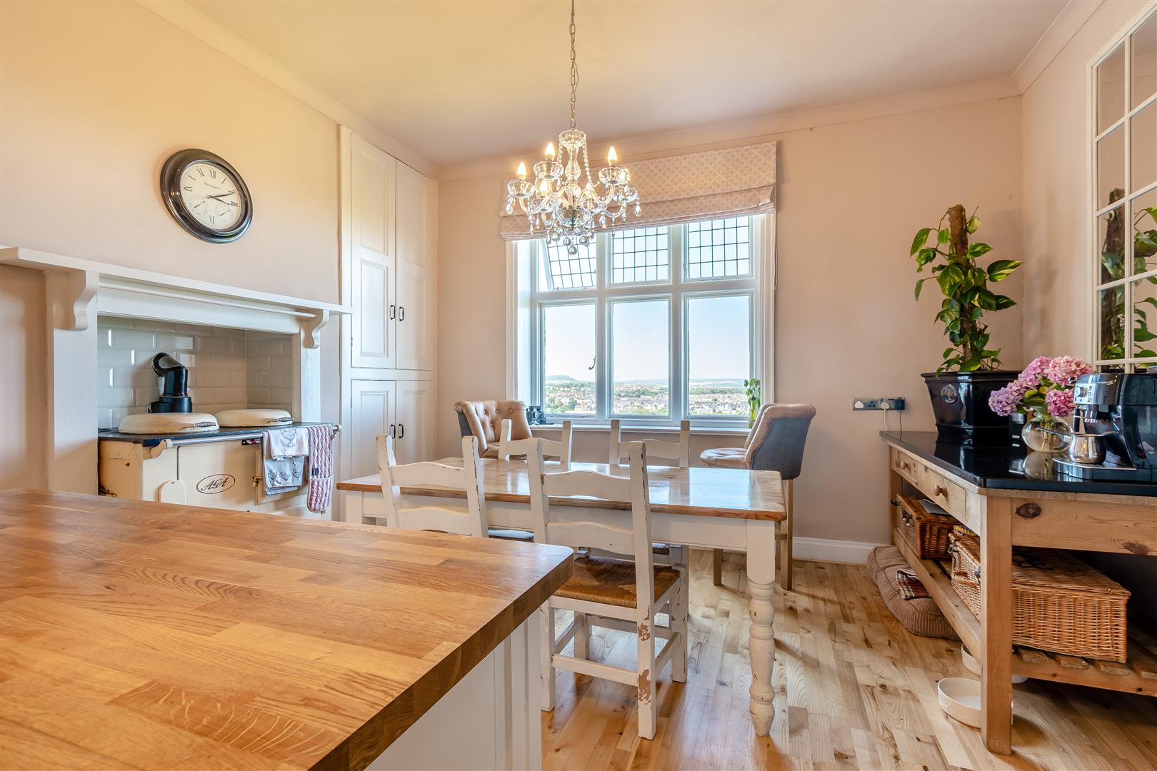 The property is thoughtfully arranged over three floors, featuring spacious rooms with many bay windows that capture stunning vistas. The ground floor includes a grand entrance hall, a feature lounge with dual aspect bay windows, a formal dining room, a kitchen/diner with a built-in pantry, a ground floor cloakroom, and a bright and airy orangery. The basement level boasts a large library/games room, a music room, a utility/laundry room, a storage room, a tool store, and a separate WC. On the first floor, a generous central landing leads to four double bedrooms, including a master with an en-suite shower room and fitted wardrobes. There is also a family bathroom and a separate WC.